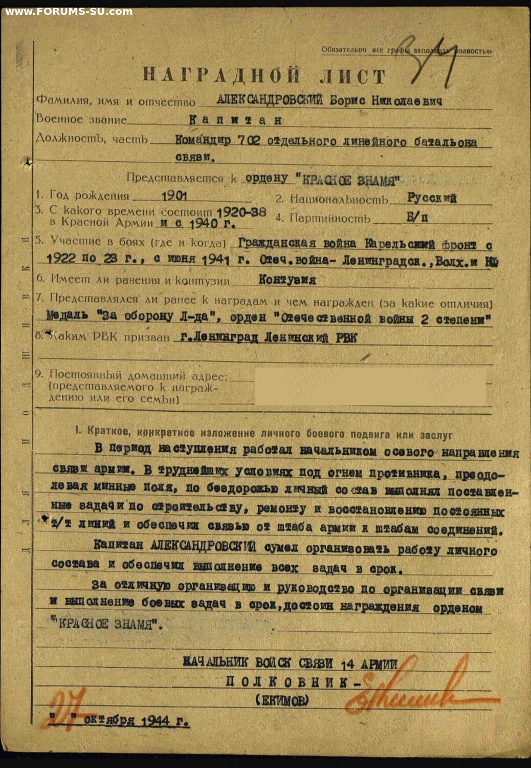 Кавалер участник Гражданской войны на Карельском Фронте, участник с первых дней ВОВ тоже на Карельском Фронте .