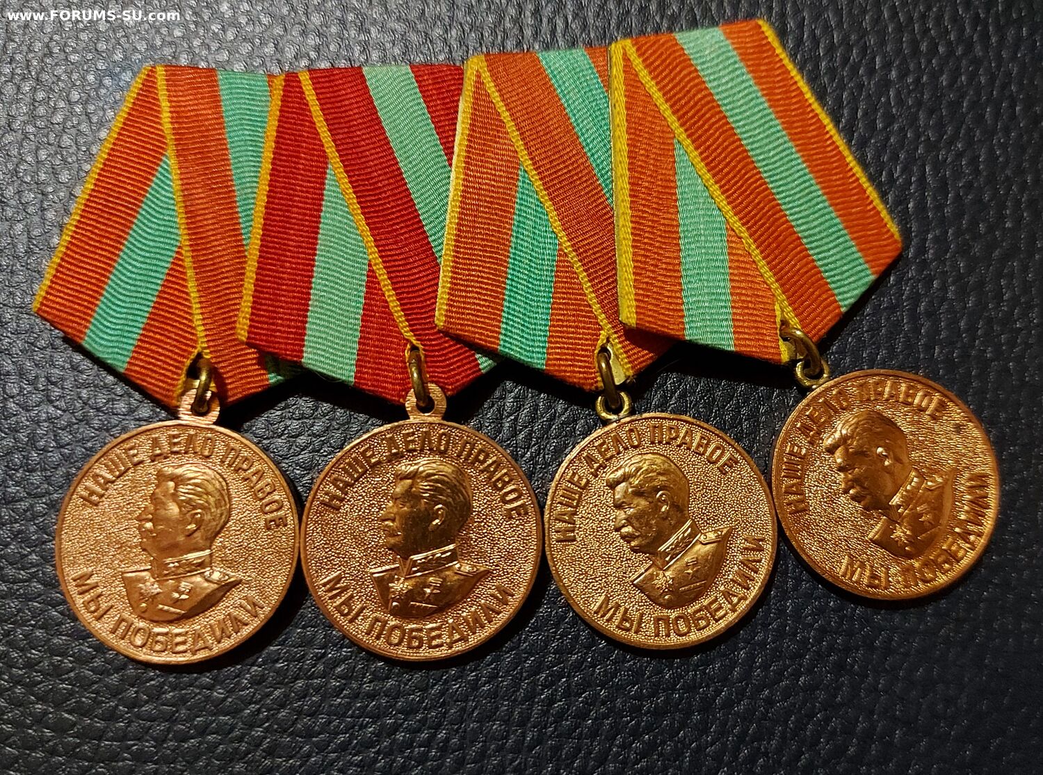 Четыре медали на латунных колодках, две разновидности 2+2 в сохране.