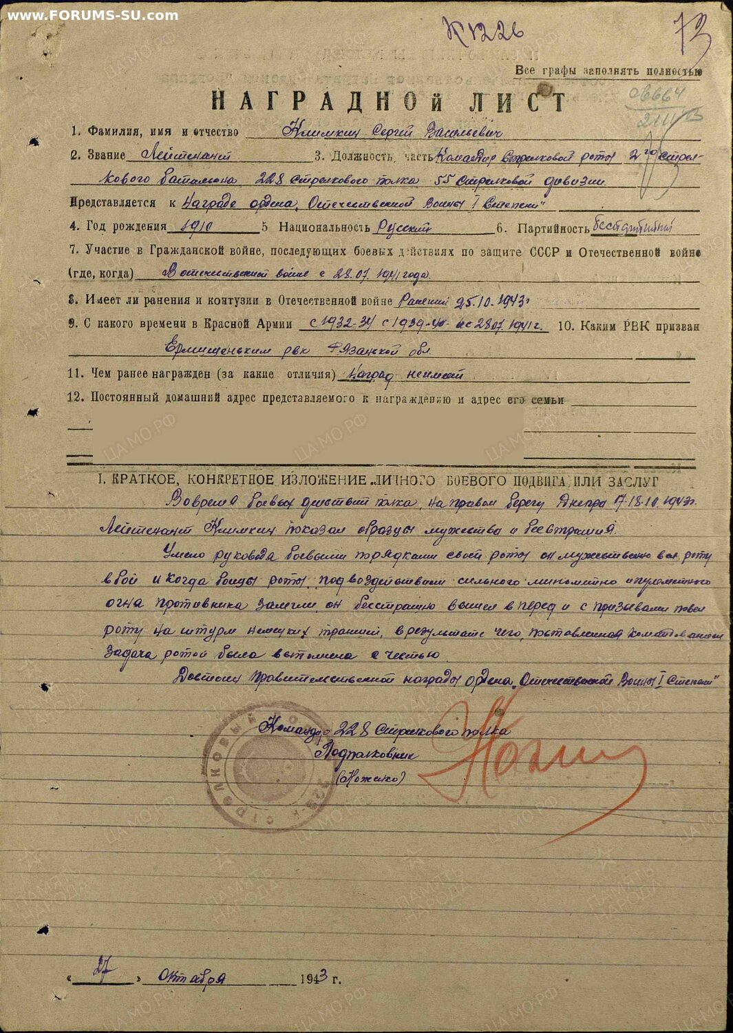 Кавалер командир роты, бои за Днепр.