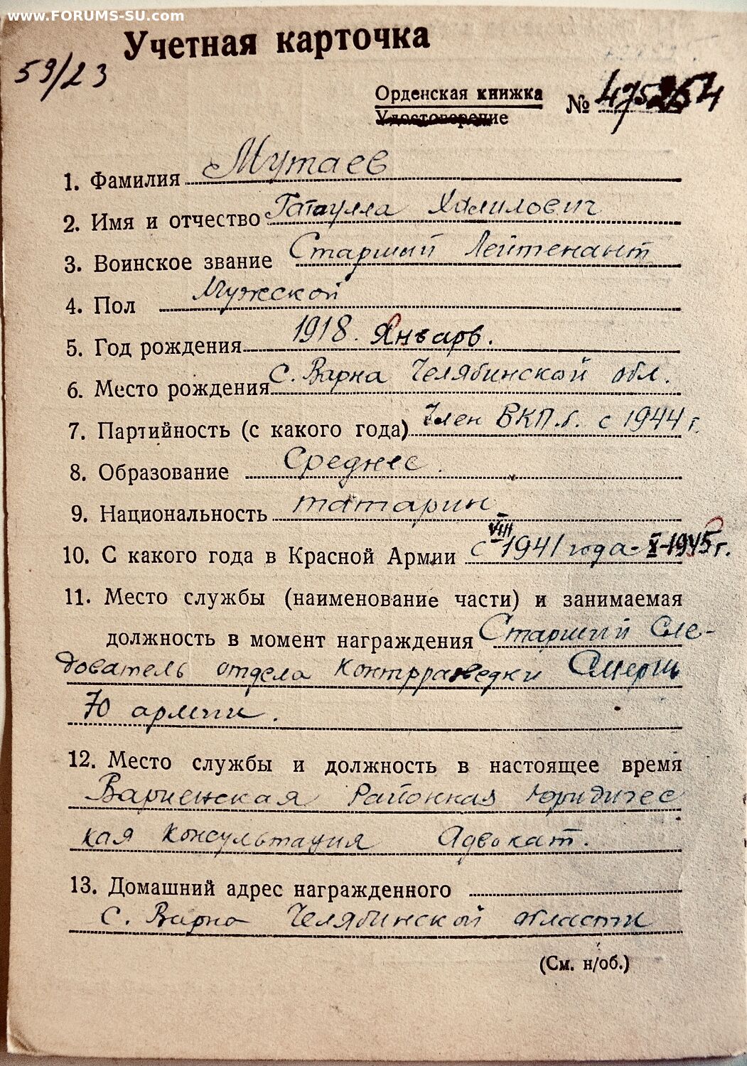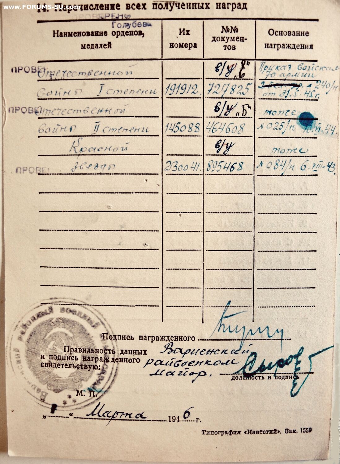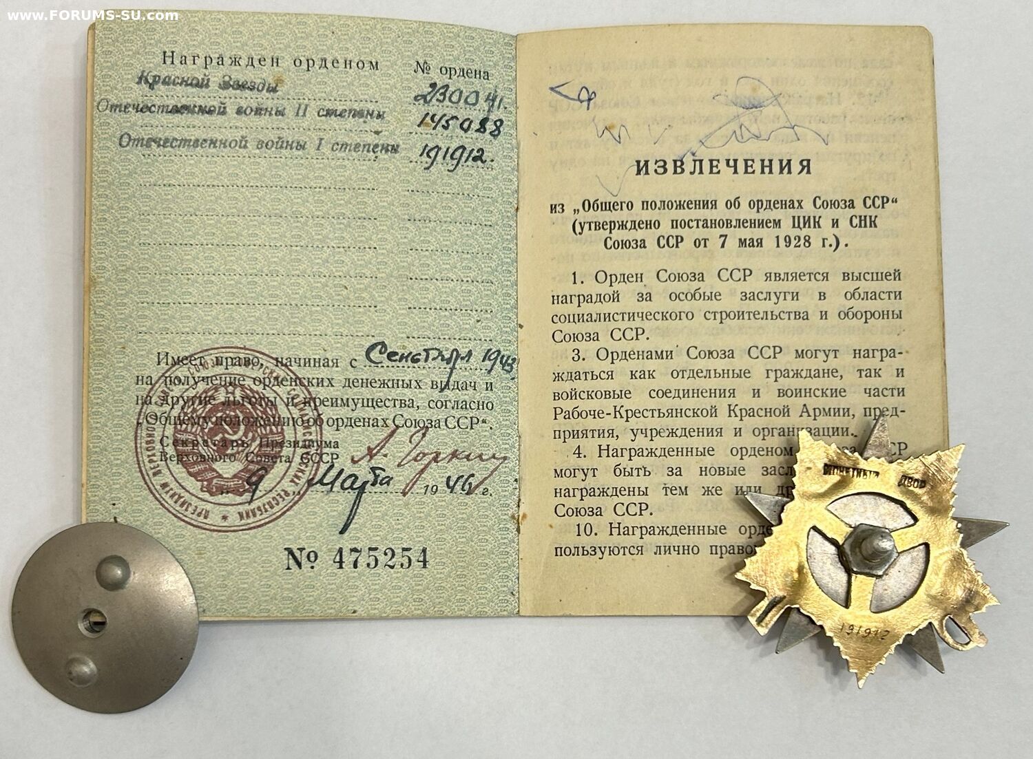 ОВ 1 ст. 191.912 в комплекте с орденской книжкой
