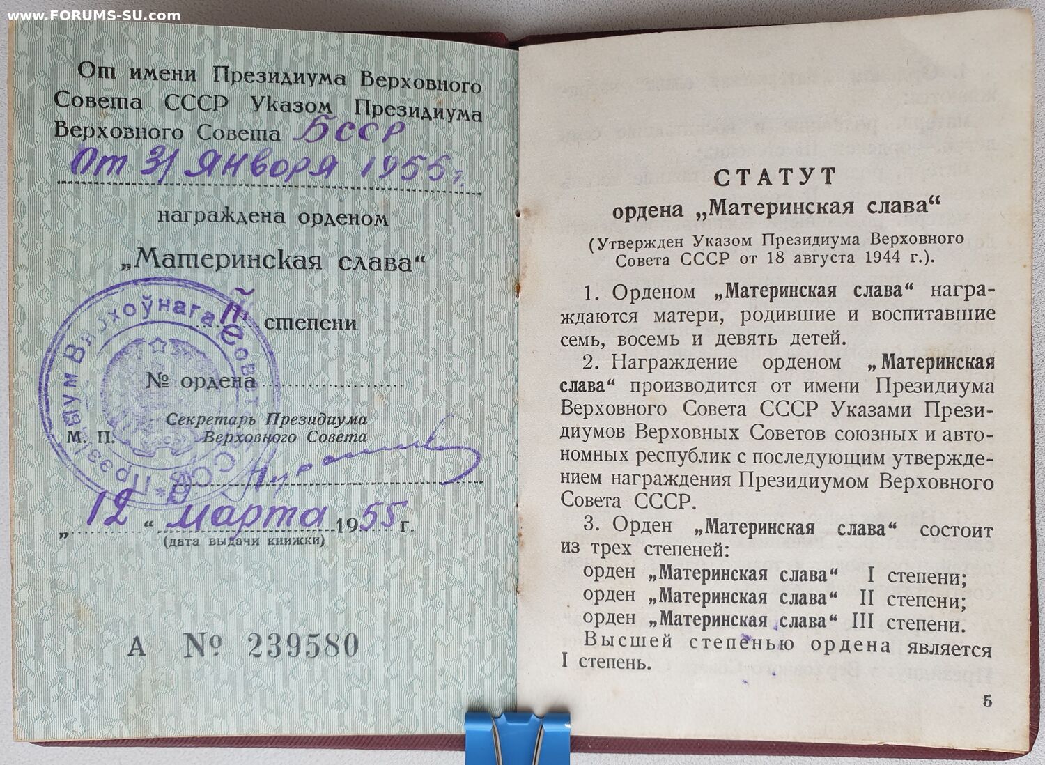 В лот также входит два документа. В орденской книжке отсутствует номер ордена! Именно так эту орденскую и вручили, она без вмешательств.