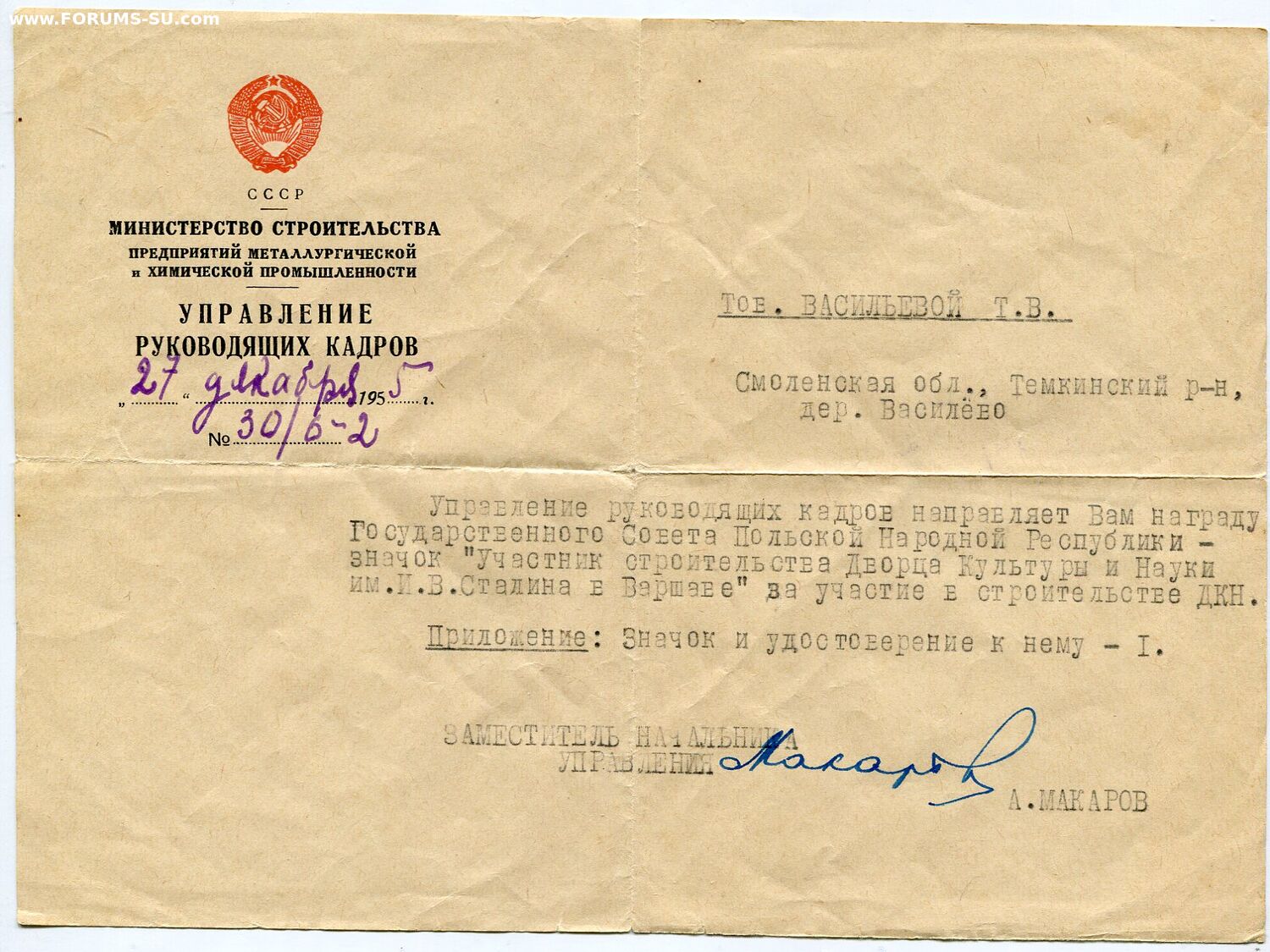 По всей видимости, дизайн и производство значка, как и вся стройка, было произведено за счет СССР. Только вручение формально сделали "от благодарного польского народа". Поэтому, логично было его разместить в этом разделе.