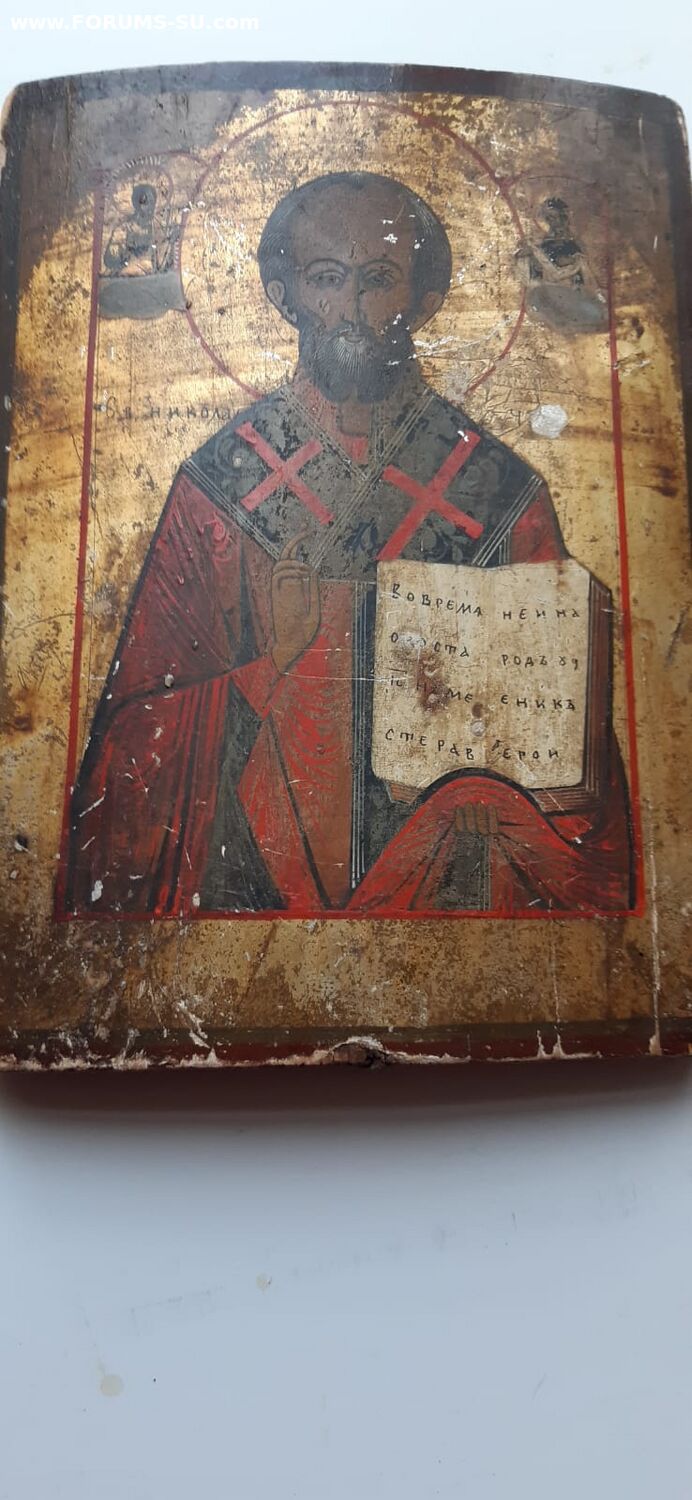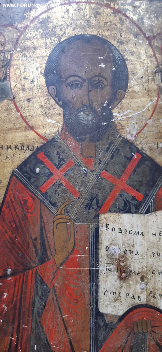 Размеры 27,5х20,5см., без каких либо вмешательств и реставрации, доска крепкая, верхняя торцевая шпонка на месте, нижняя утрачена, Мпц 6тр