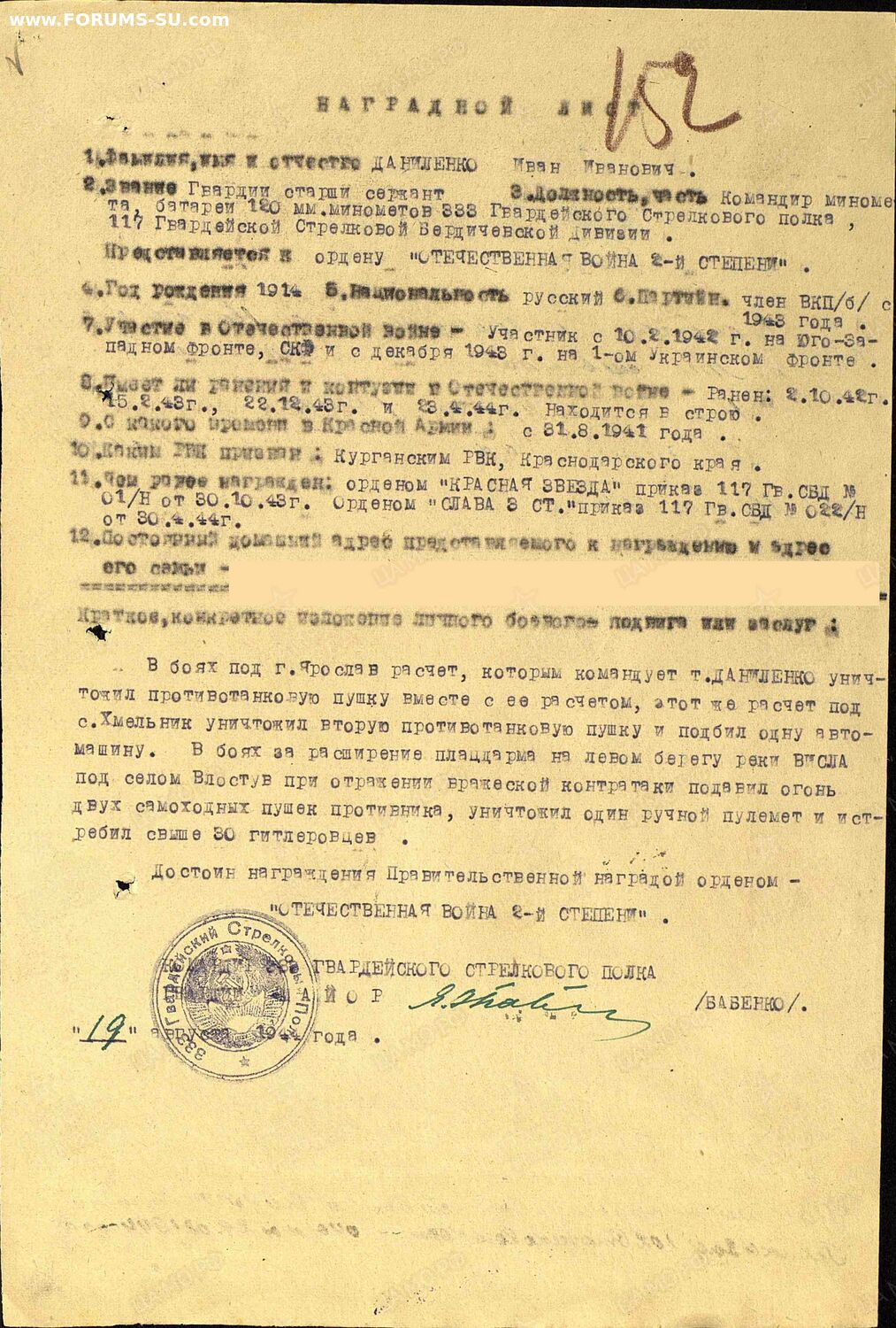 погиб через 10 после вручения этого ордена.