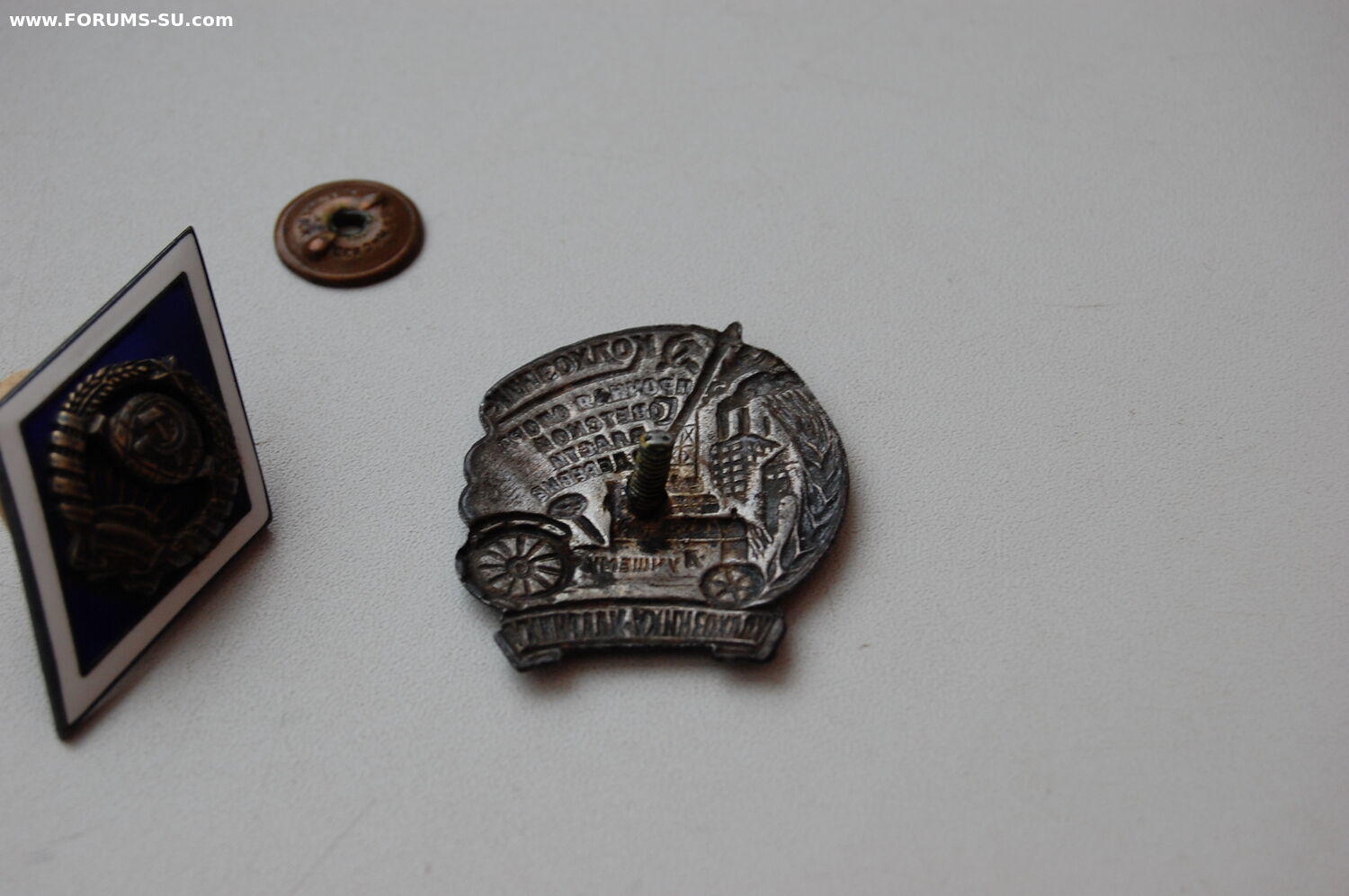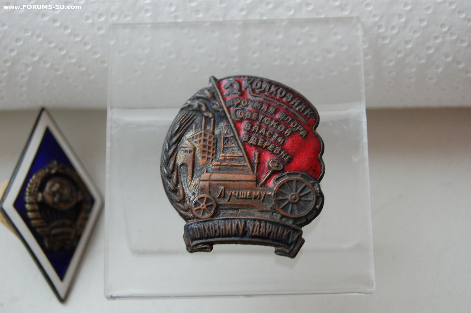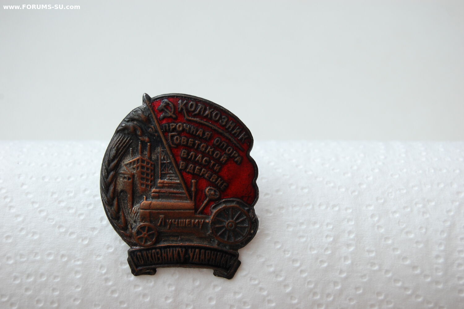Знак "Колхознику -ударнику ". Отличная сохранность, эмали все на месте. Родная, маленькая закрутка. Немного искривлен винт (показал на фото).