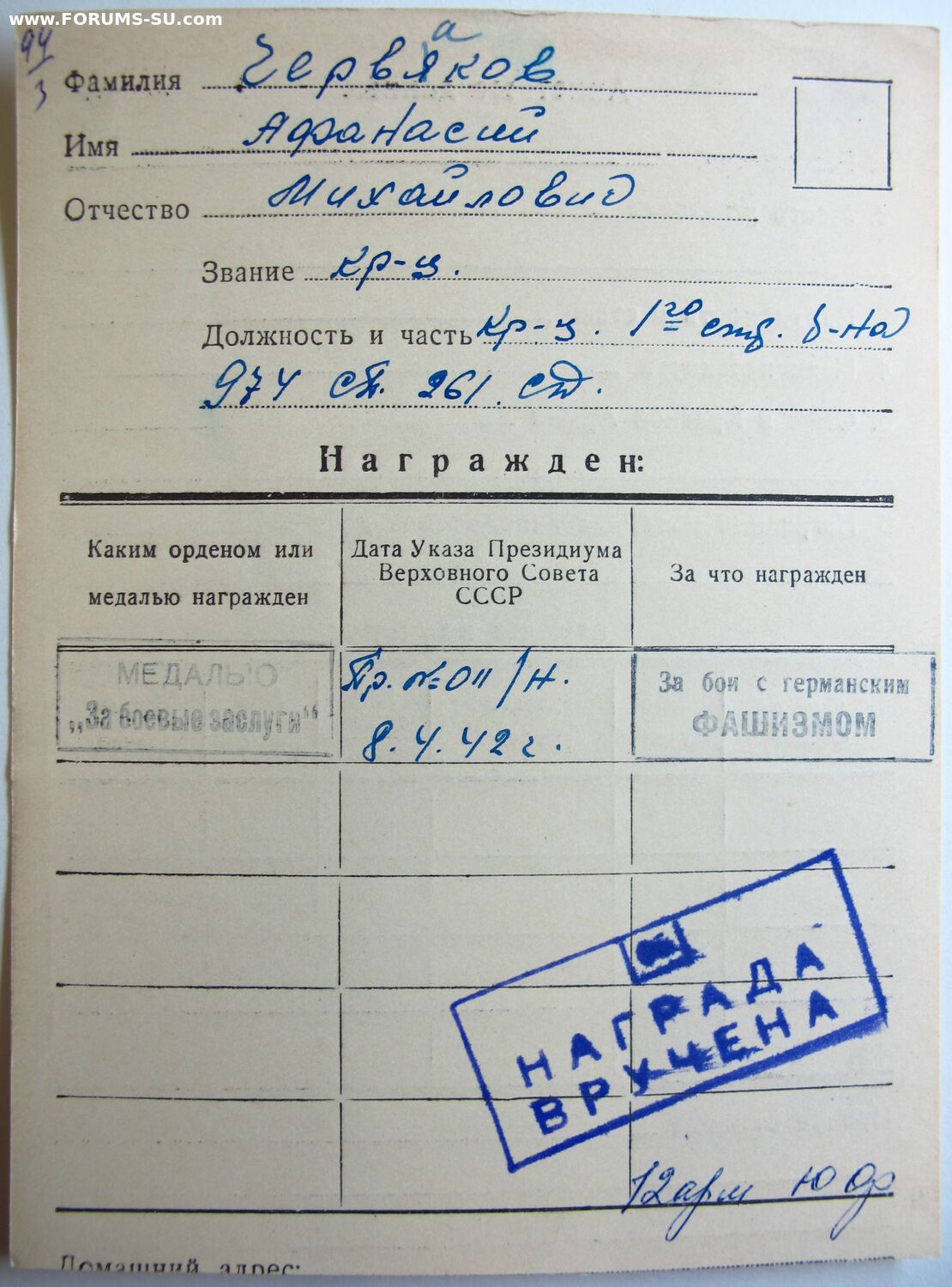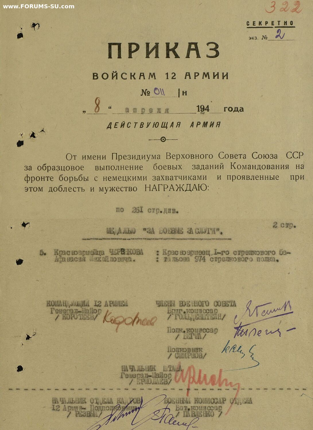 974 СП, 261 СД, 12 армия