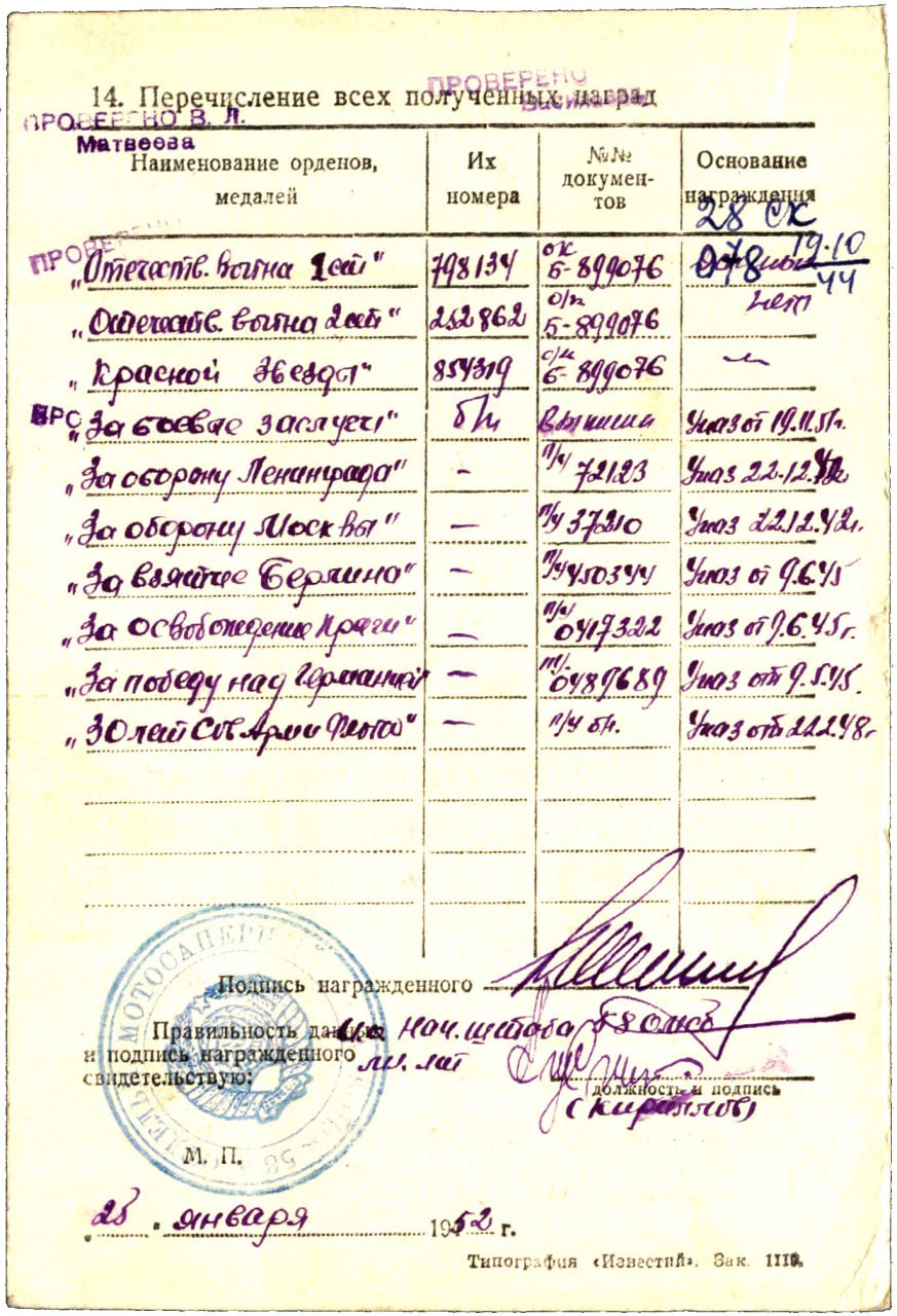 Красного Знамени, Суворова, Кутузова, Богдана Хмельницкого, Александра Невского, Ушакова, Нахимова, Отечественной Войны, Красной Звезды, Славы, За Службу Родине в ВС СССР