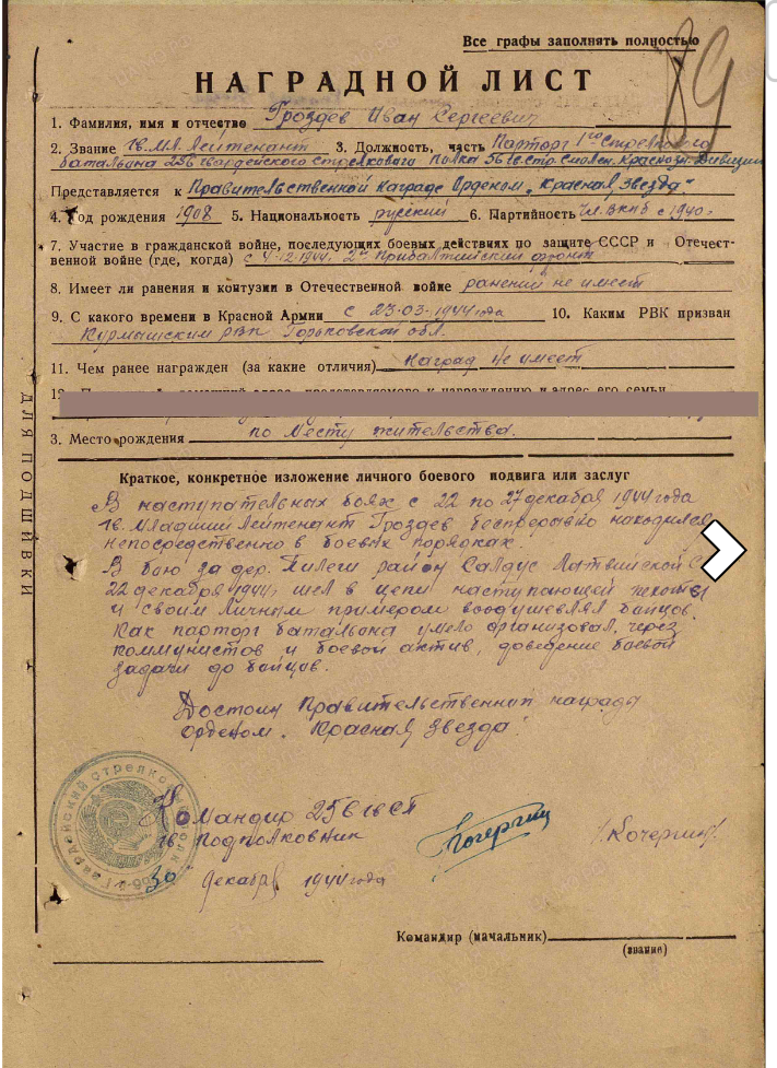 Красного Знамени, Суворова, Кутузова, Богдана Хмельницкого, Александра Невского, Ушакова, Нахимова, Отечественной Войны, Красной Звезды, Славы, За Службу Родине в ВС СССР