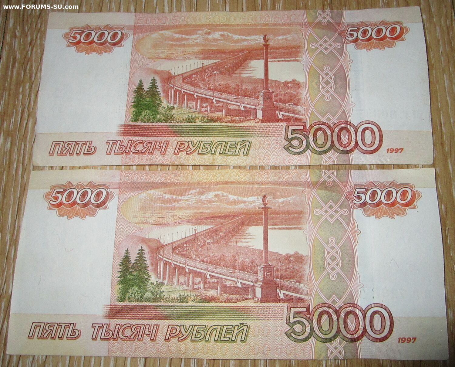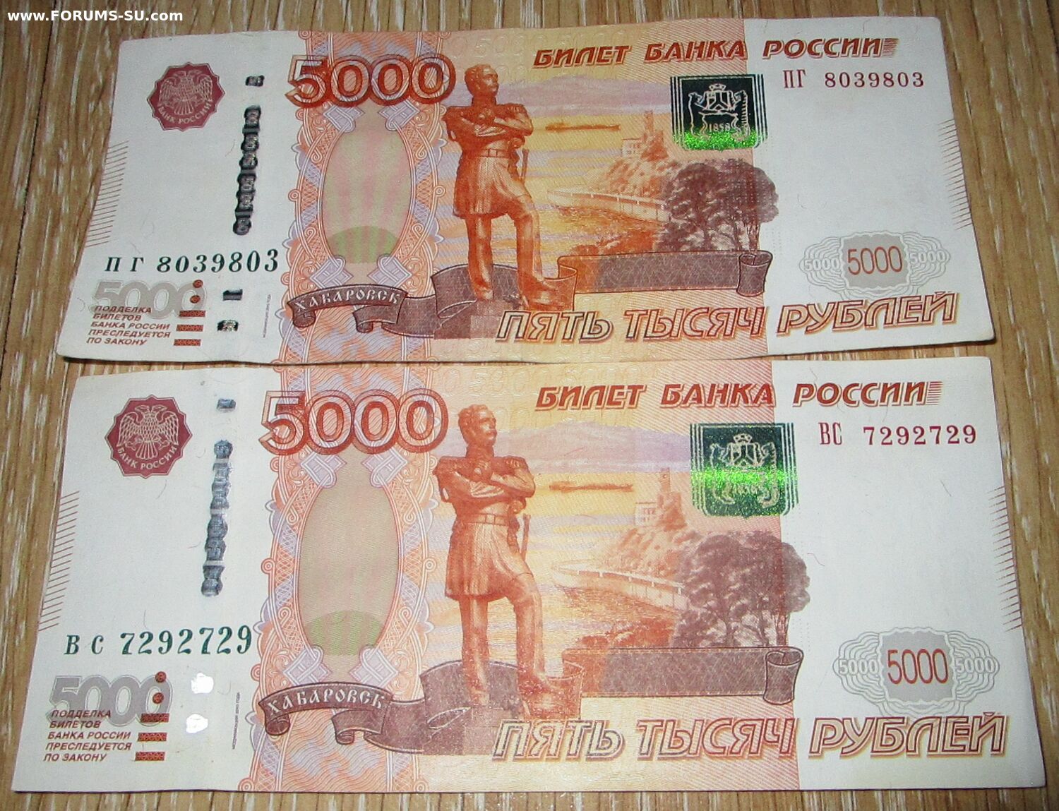 В продаже в отличном состоянии две банкноты номиналом по 5000 рублей (1997) с зеркальными номерами: ПГ 8039803 и ВС 7292729