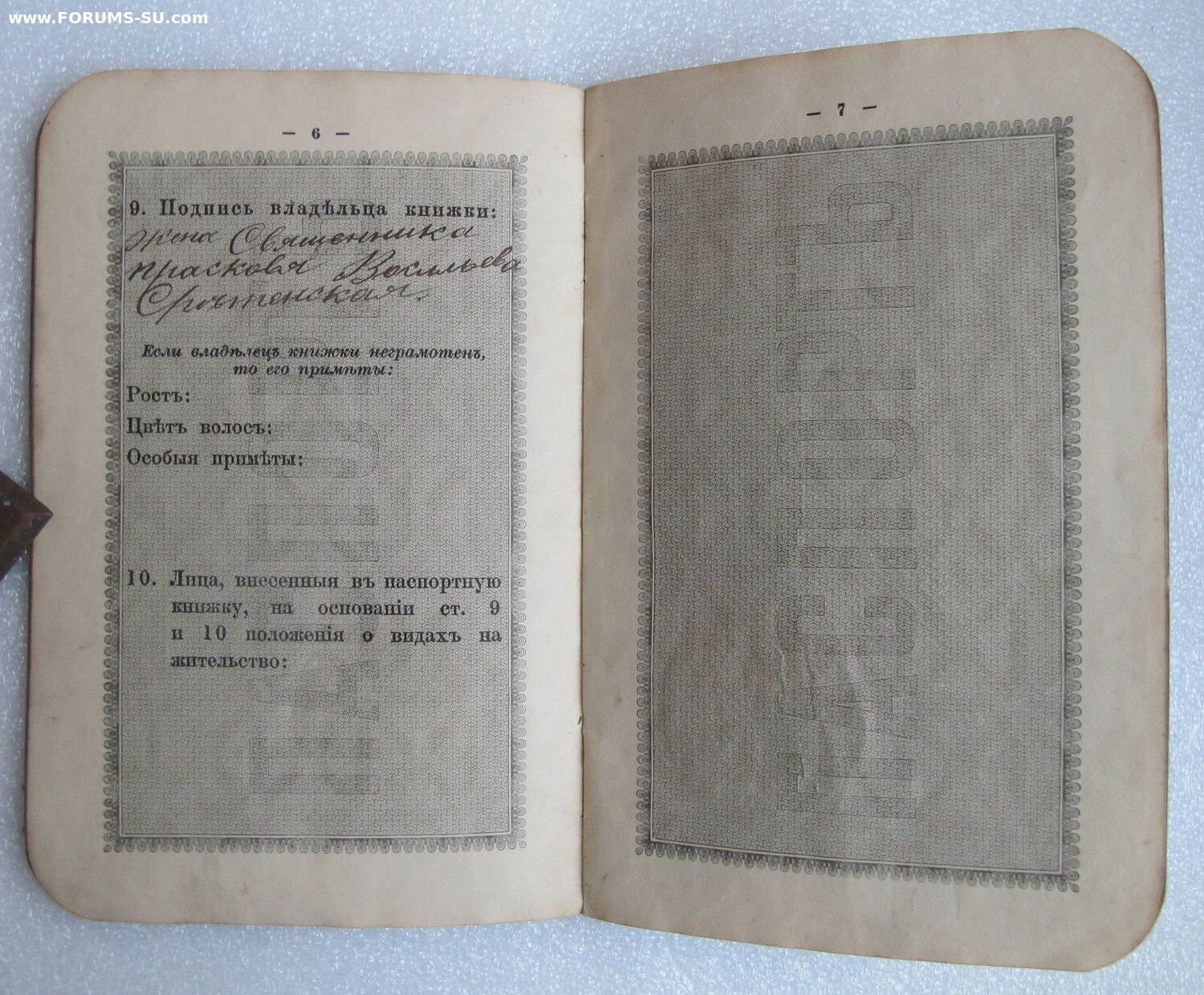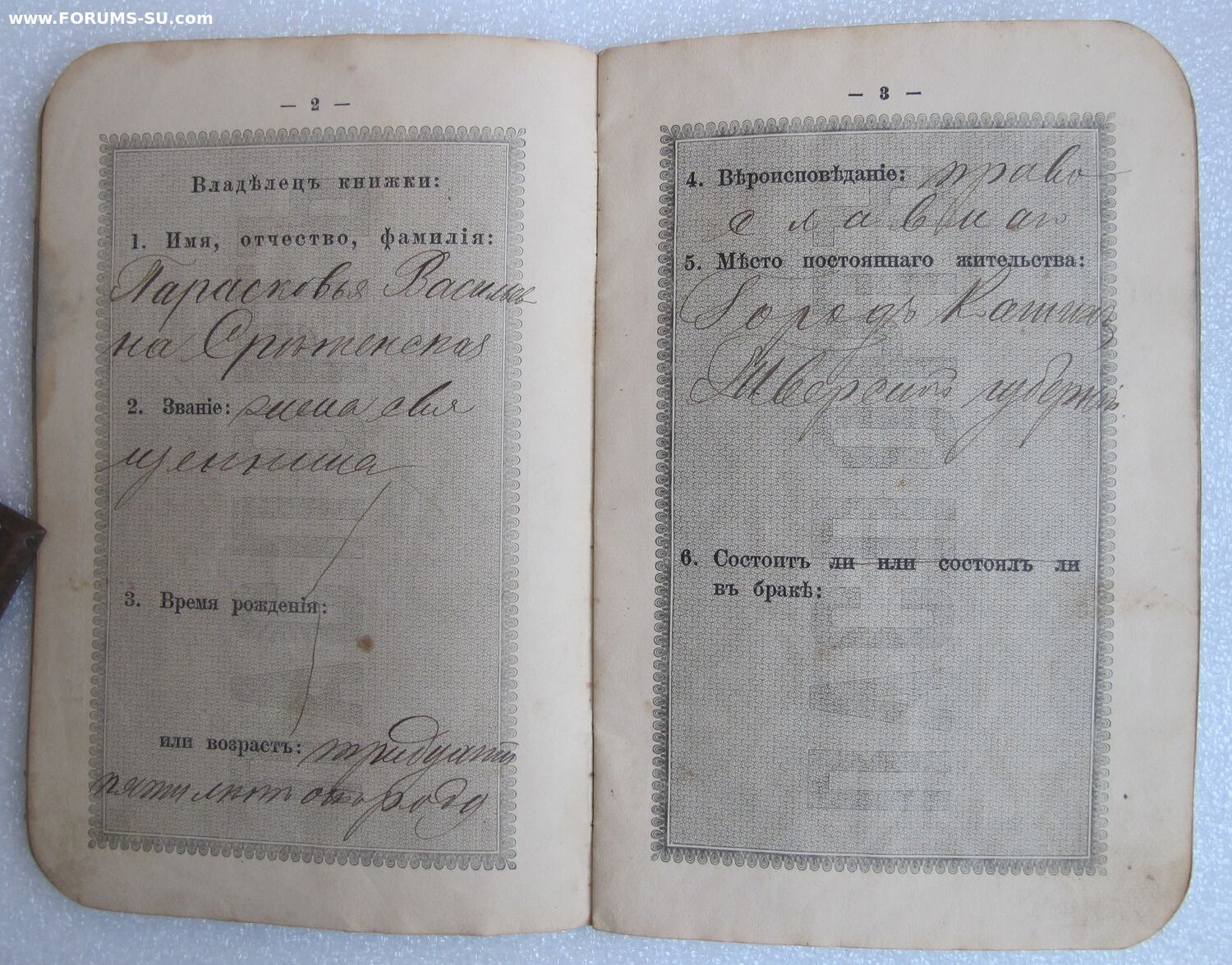 Паспорт. книжка жены священнослужителя 1896г.(Кашин,Тверск.) Любитель7 - 29 янв 2025 18:56.46 × Мини профиль пользователя Любитель7 Сообщения: 1969 Зарегистрирован: 07 янв 2009 18:07.46 Статус: Не в сети - 29 янв 2025 18:56.46 #6831742 ...... Фото