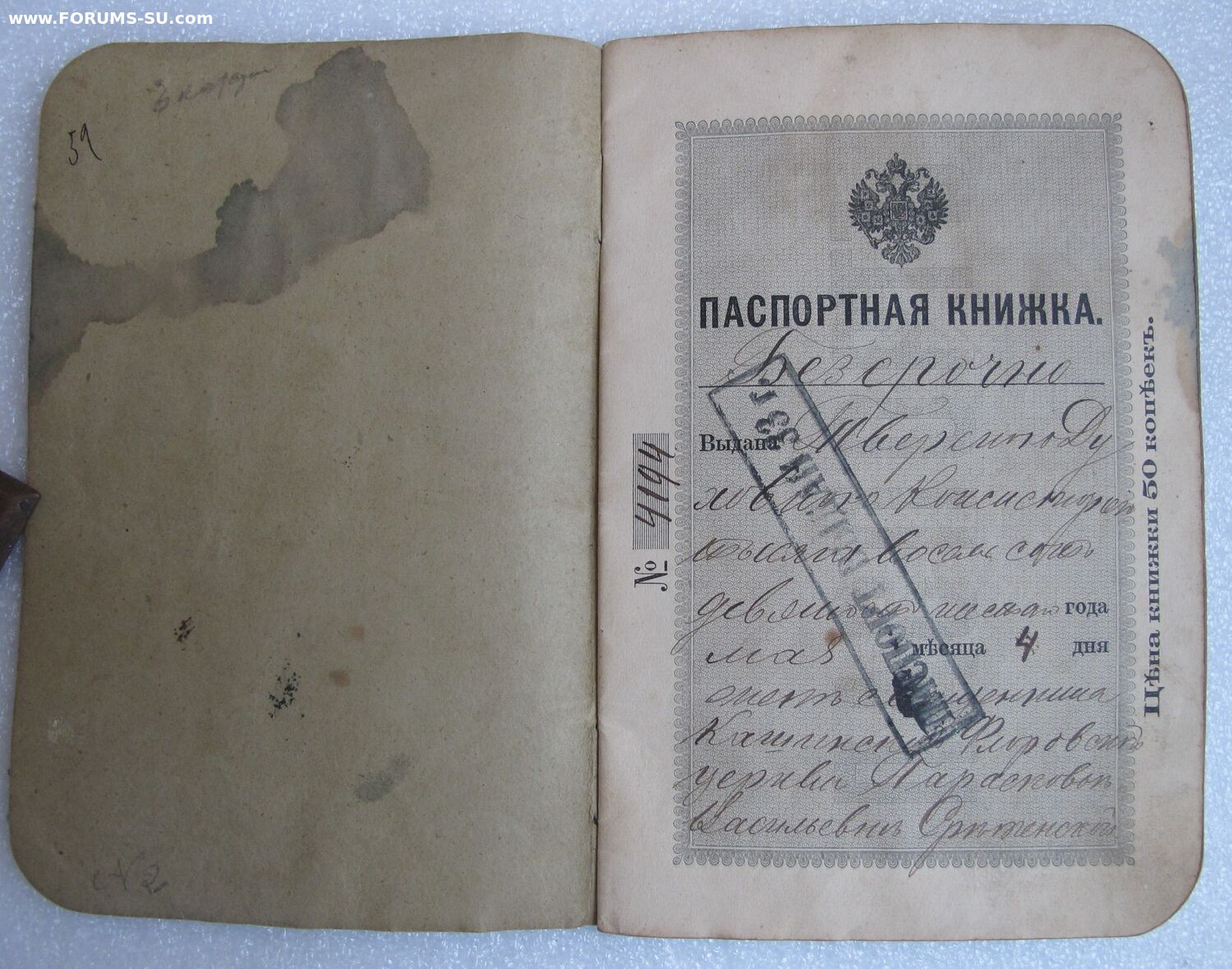 Паспорт. книжка жены священнослужителя 1896г.(Кашин,Тверск.) Любитель7 - 29 янв 2025 18:54.44 × Мини профиль пользователя Любитель7 Сообщения: 1969 Зарегистрирован: 07 янв 2009 18:07.46 Статус: Не в сети - 29 янв 2025 18:54.44 #6831740 Все на фото.Фиксированная стоимость-10 000р.,пересыл покупателя. Фото