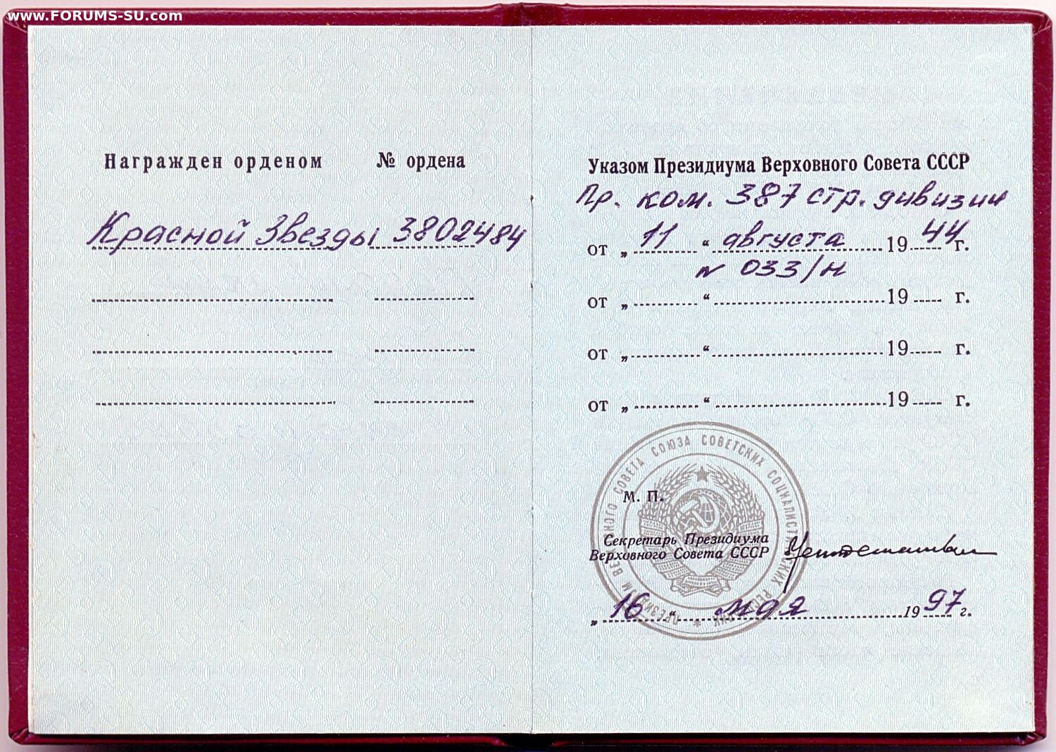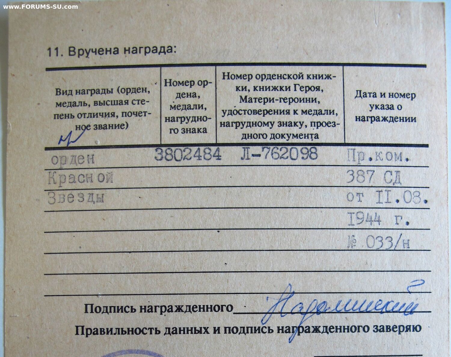 Обе орденские книжки подтверждены копиями двух учётных карточек.