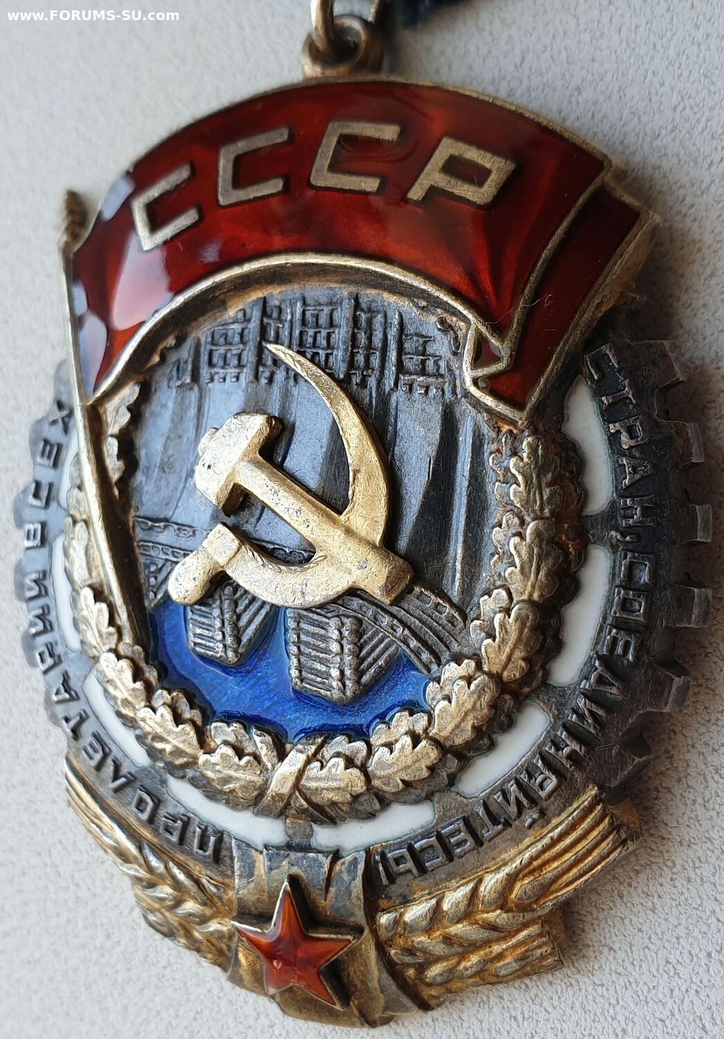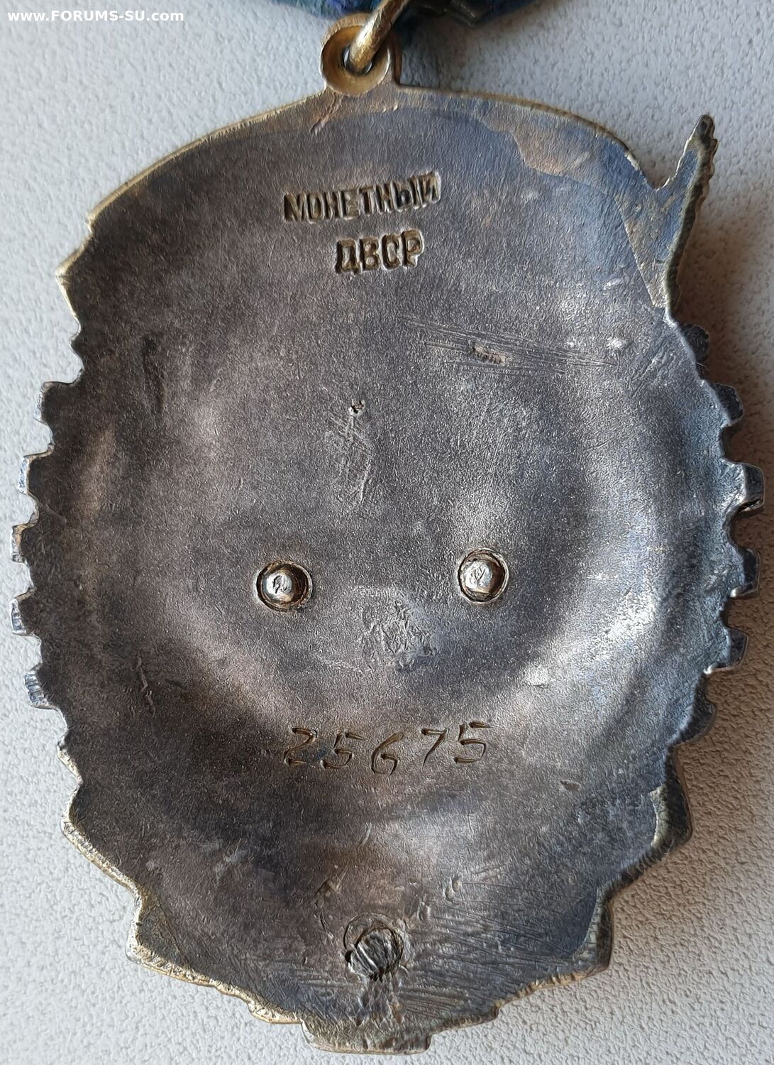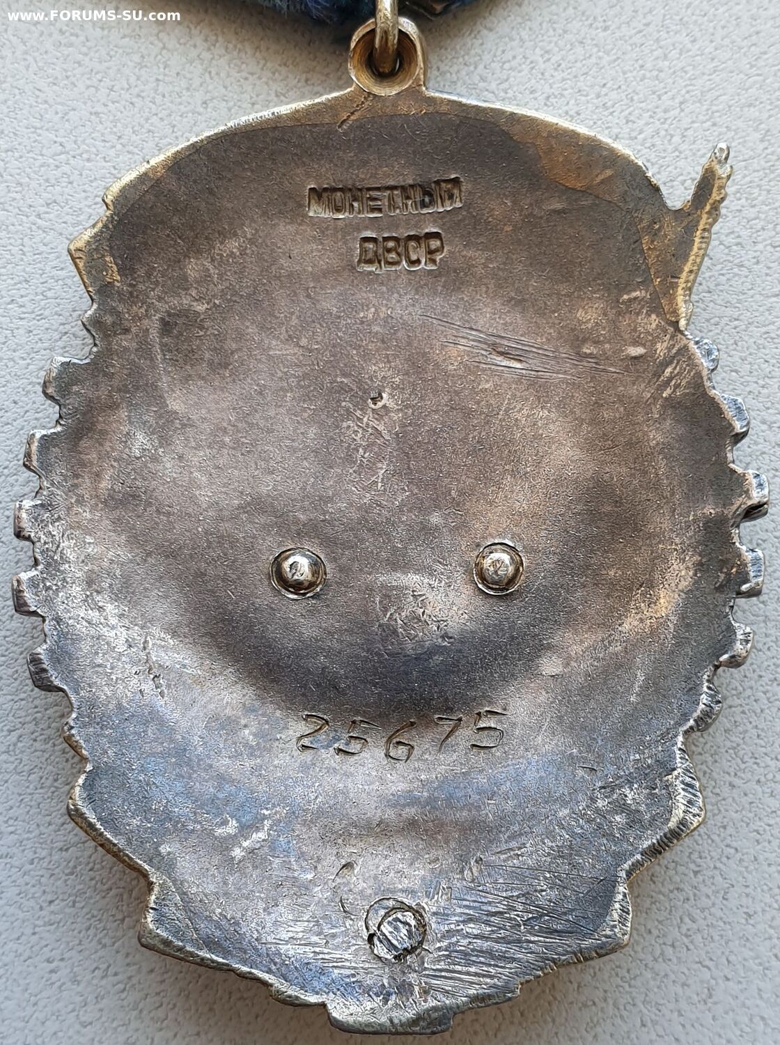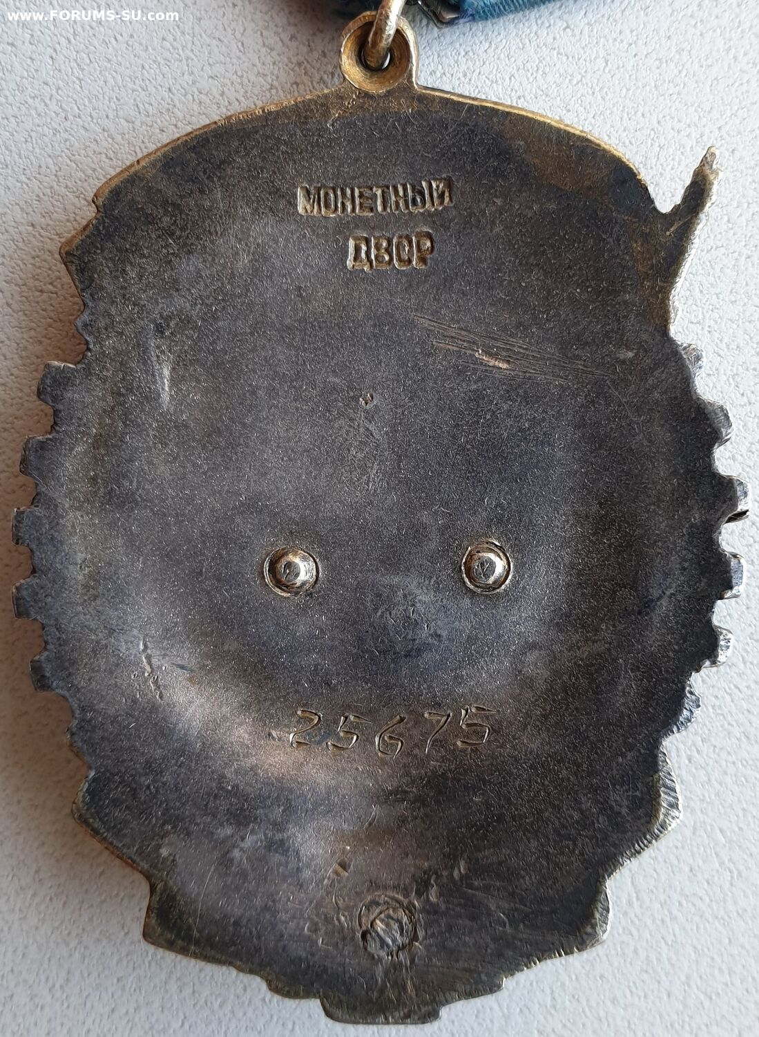 Тип 3, Вариант 2. Клеймо Монетного Двора расположено в верхней части ордена. Слово "МОНЕТНЫЙ" закруглено вверх (впадиной). Аналогичный тип клейма использовался на последних штифтовых знаках второго типа. Минимальный известный номер 21016, максимальный - 26568. http://mondvor.narod.ru/ORbnLab2.htm