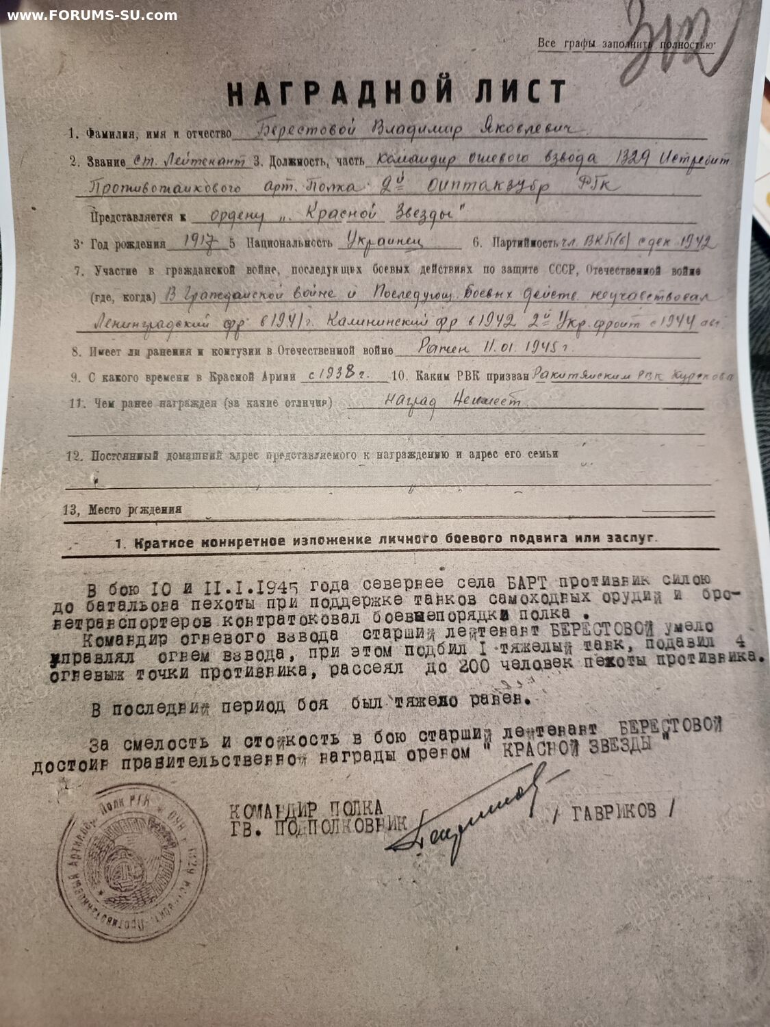 Командир огневого взвода истребительного-противотанкового артиллерийского полка