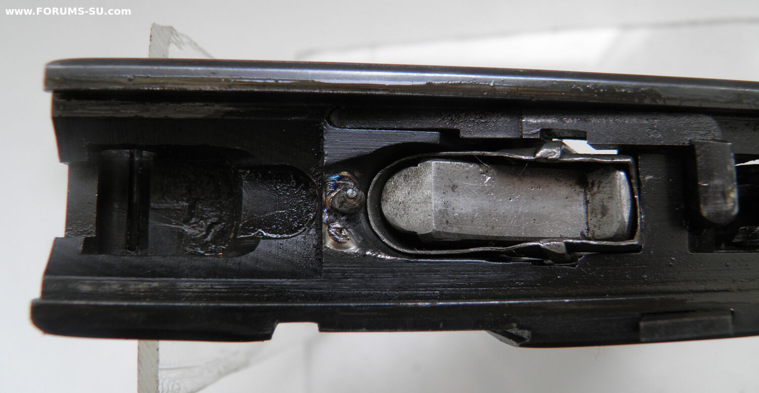 Состояние на фото, деактив: штифт через патронник стволика и рамку, не дающий отделить стволик от рамки, сварка на горке подачи патрона, не дающая подать патрон из магазина, затвор срезан под 45 градусов. Ударник, пружина ударника и удерживающий пружину штифт с направляющим стержнем отсутствуют. Цена 250000 рублей, плюс стоимость доставки.