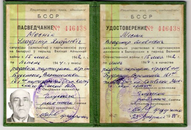 -удостоверение партизана БССР