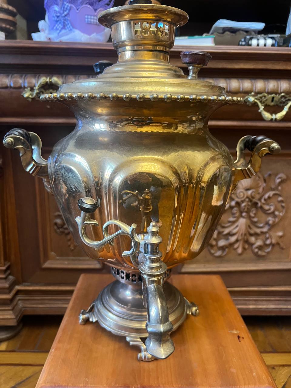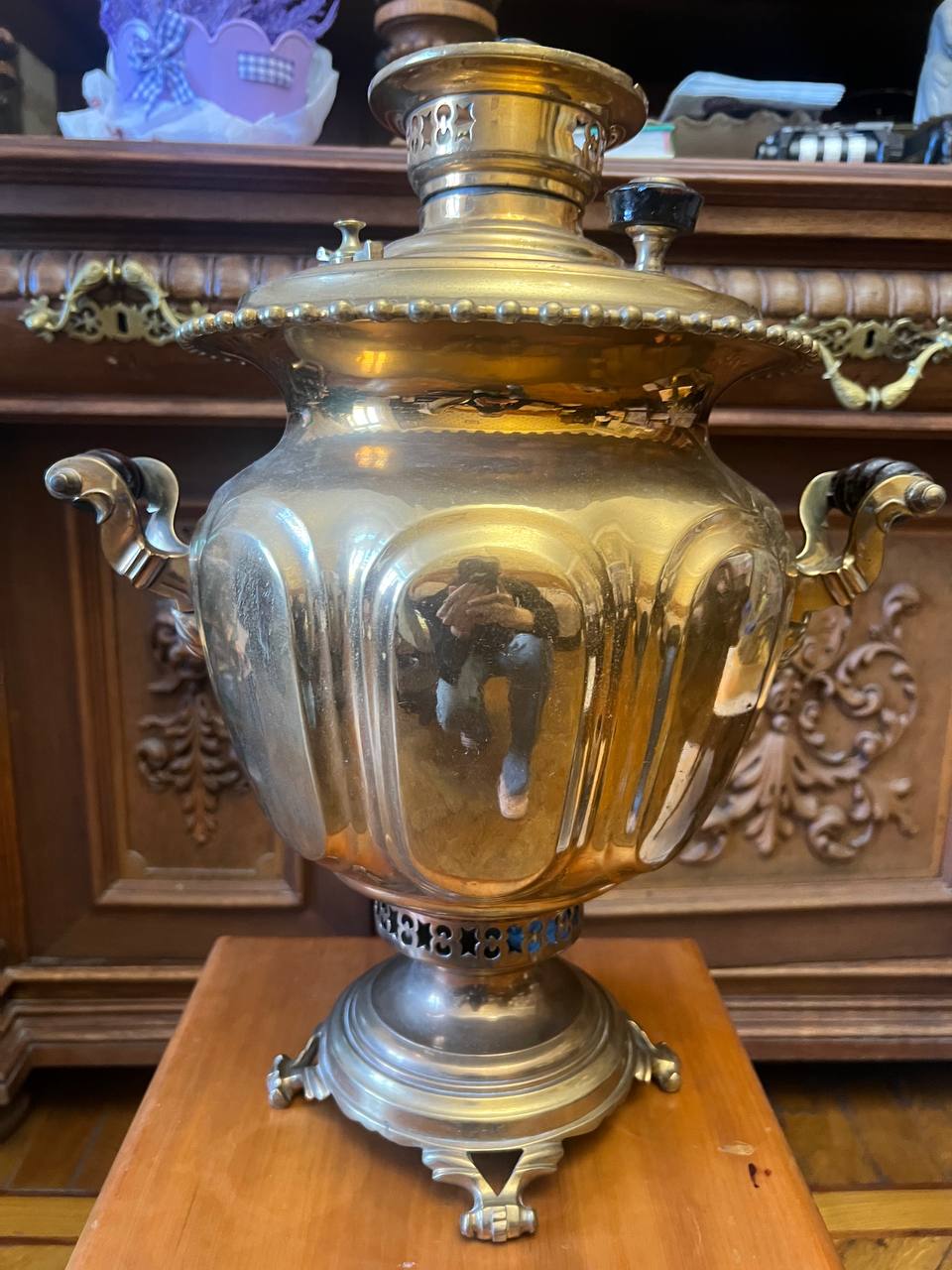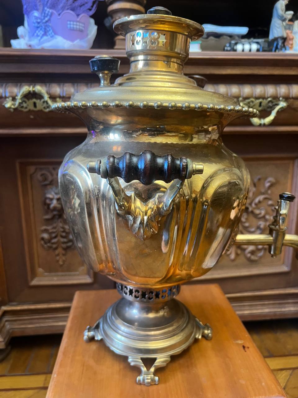 Нога повернута у самовара. какие еще есть дефекты, вмятины, трещины и т.д. Проверить надо на течи. Объем самовара, высота, вес. Все это влияет на цену. С Уважением, Алексей.
