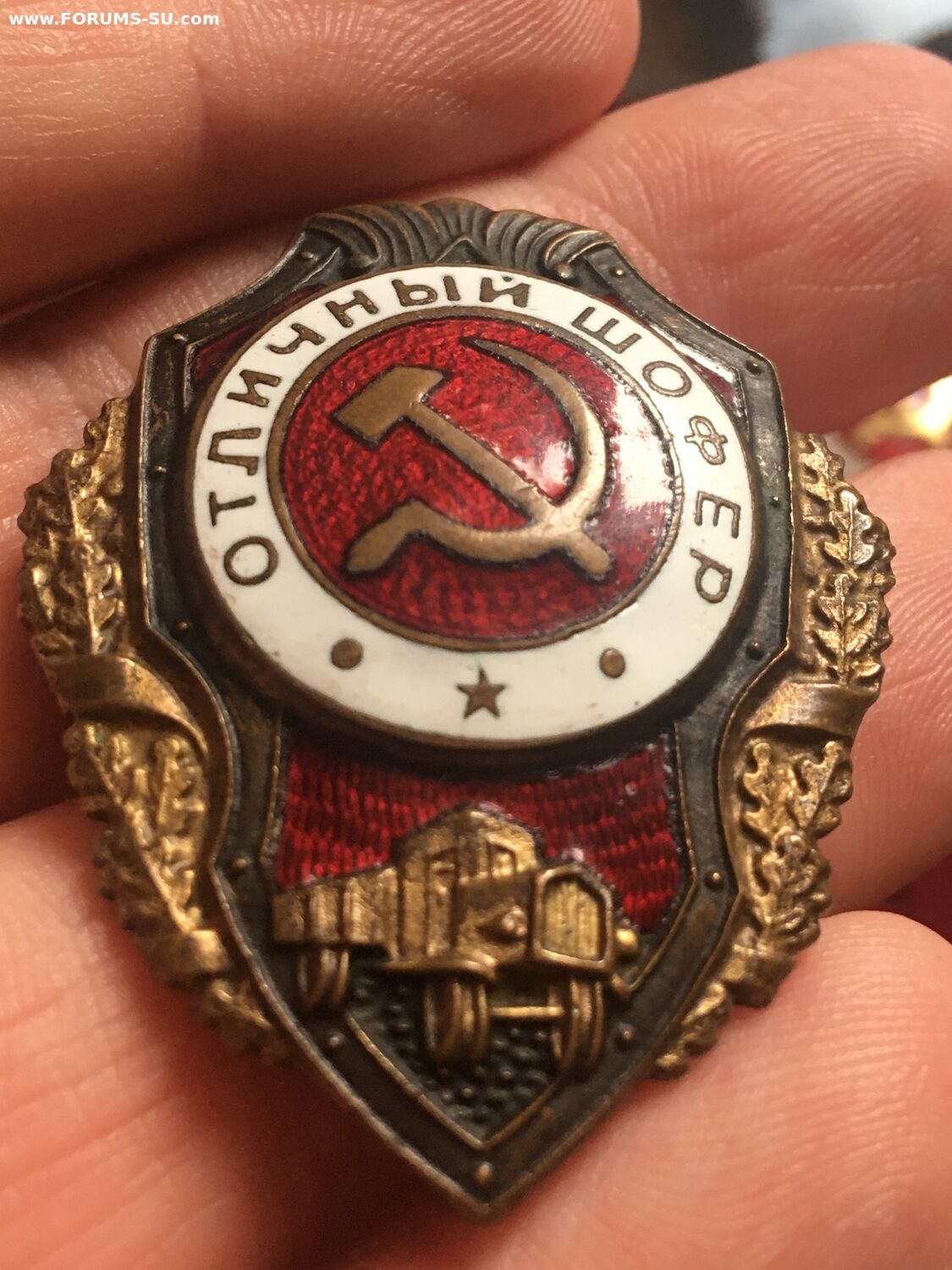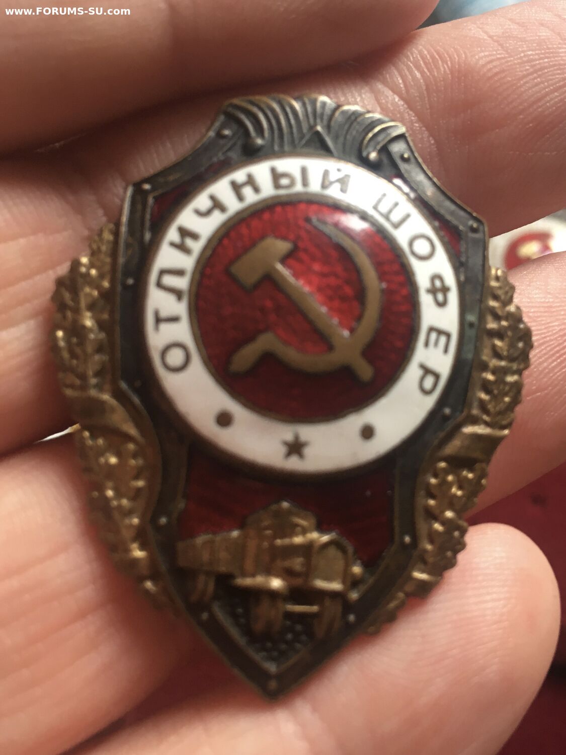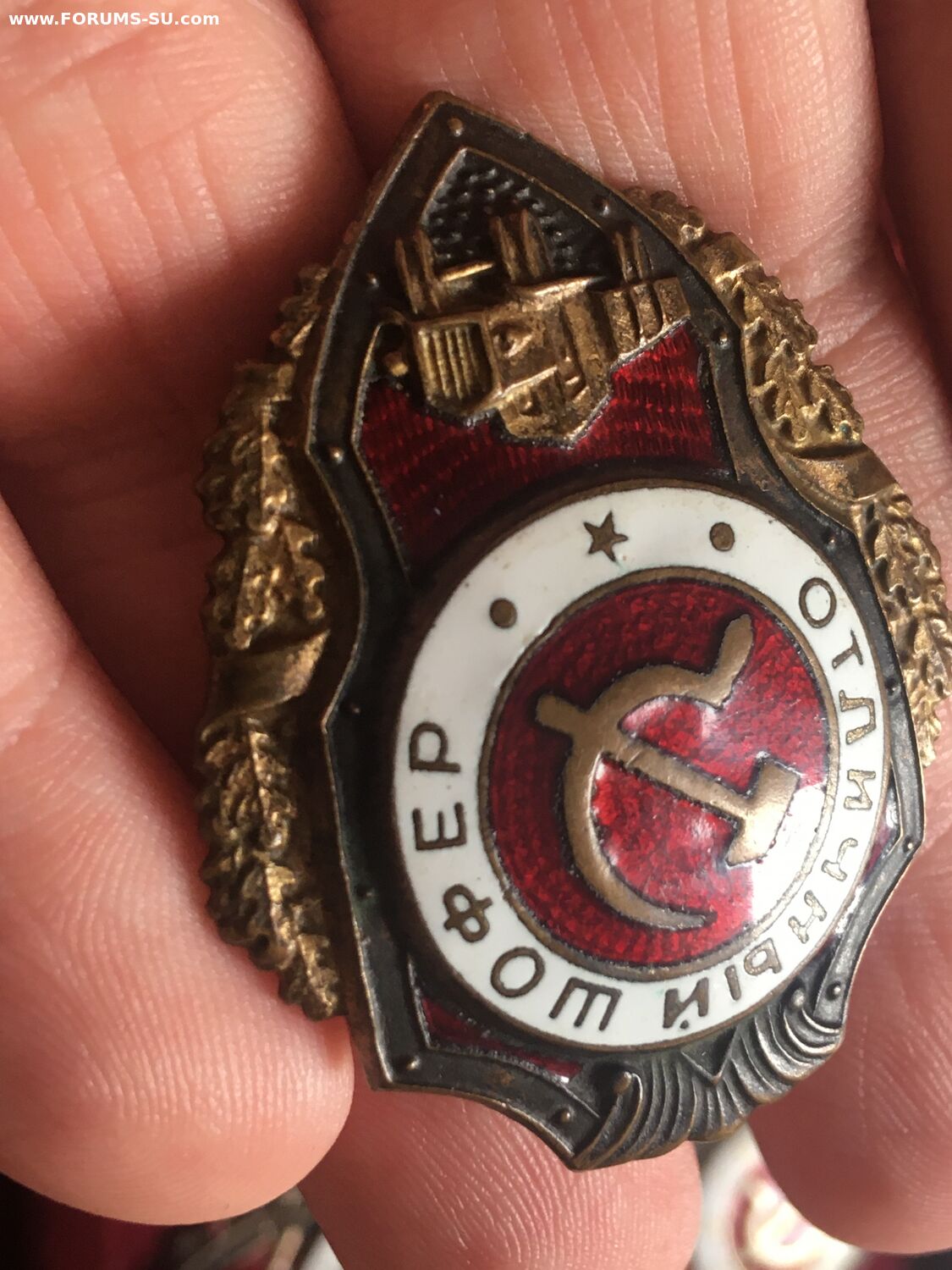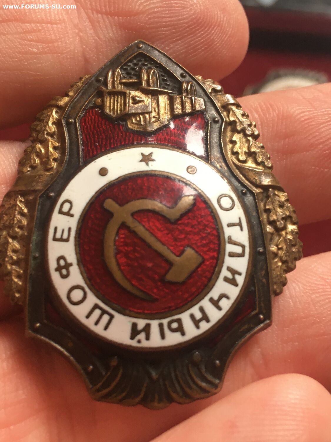 Красивый военный знак в родном сборе.