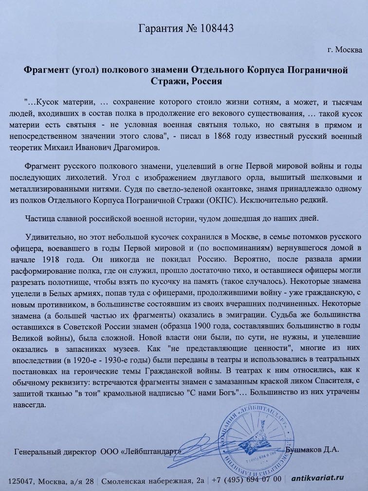 фрагмент полкового знамени Отдельного Корпуса Погран. Стражи России (оригинал, мега редкость)
