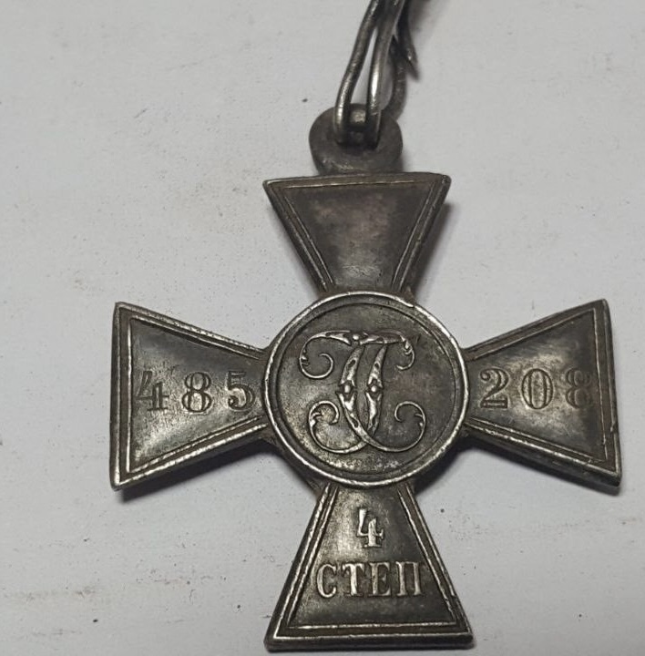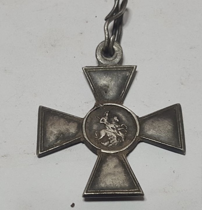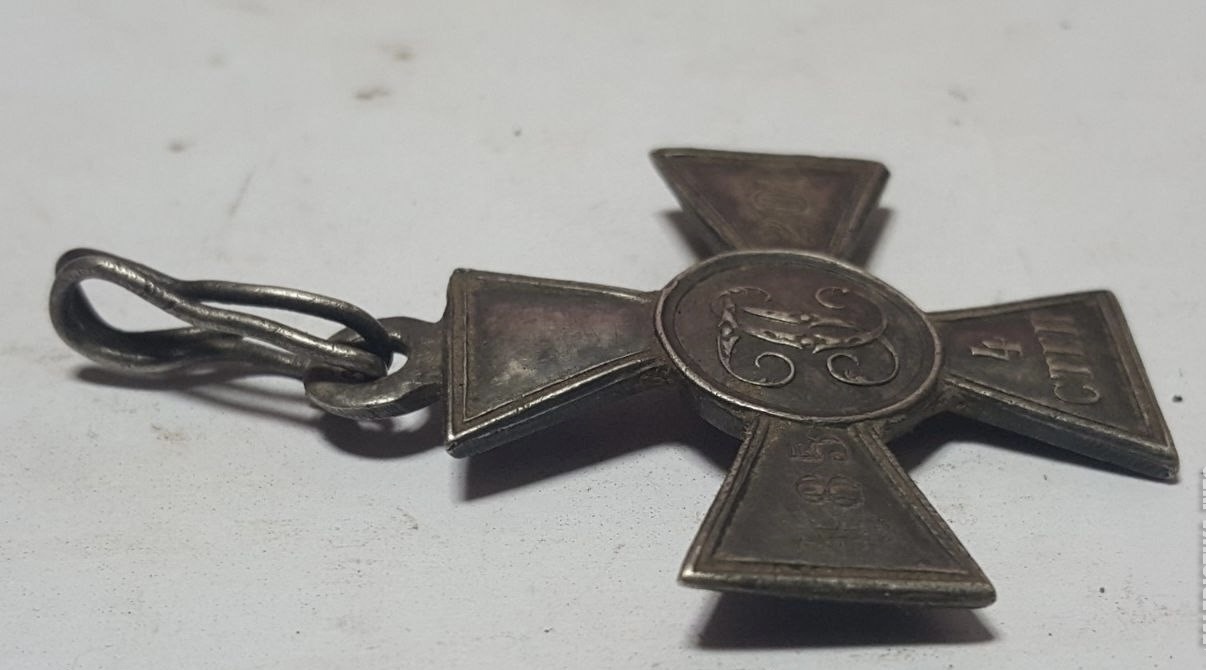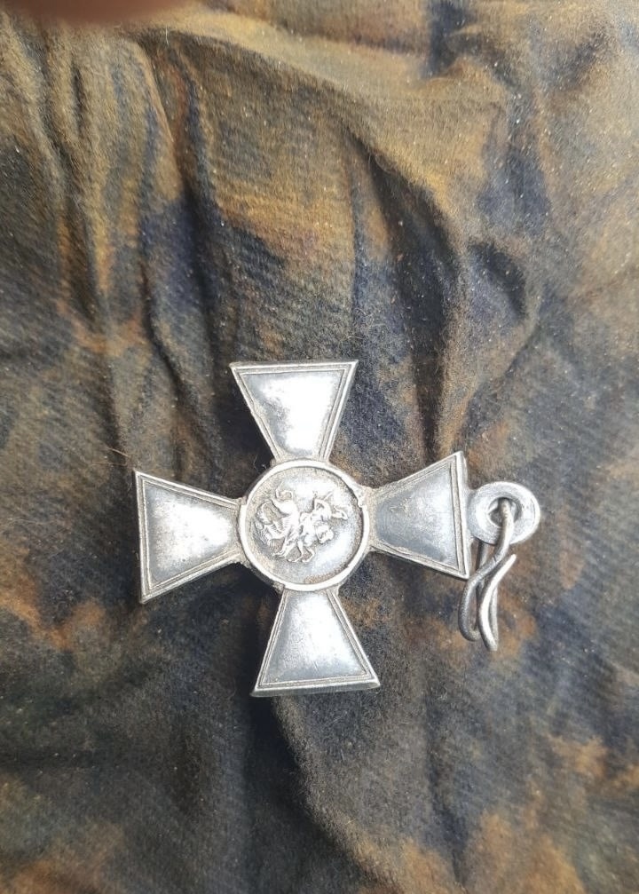 такая интересная находка пятилетней давности, четверка . Награждение лично Императором Николаем вторым. Уколов Николай, 1-я Забайкальская казачья бригада. Верхний луч креста погнут, но это не удар лопаты и не повреждение во время извлечения из земли, крест был плотно завернут в материал и спрятан в окопе.