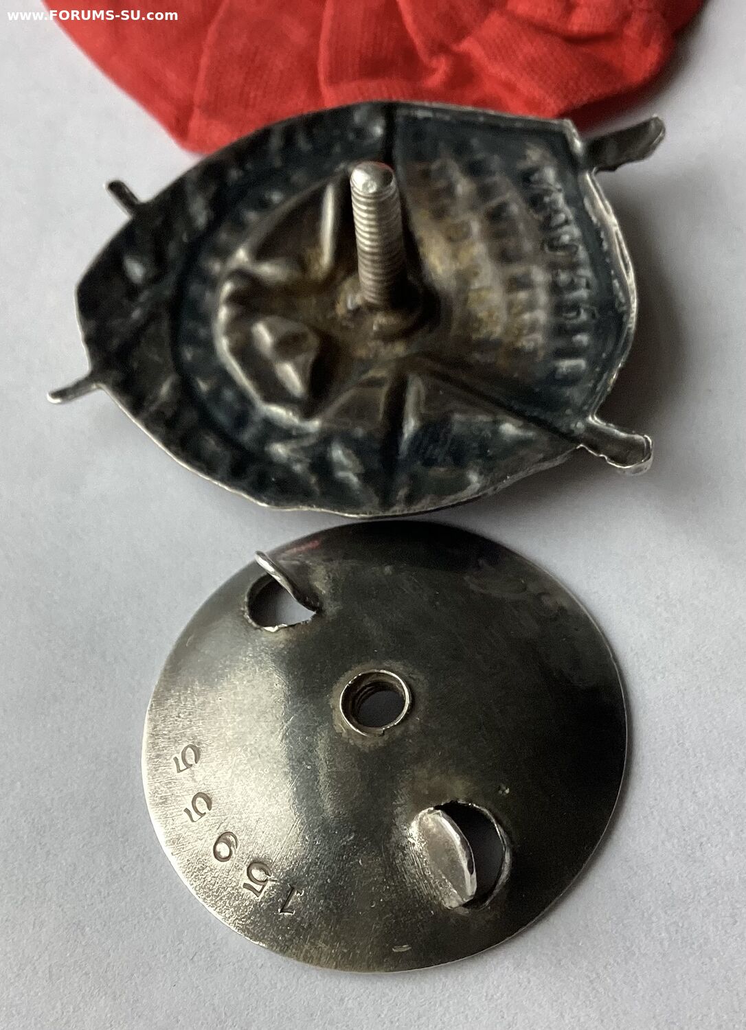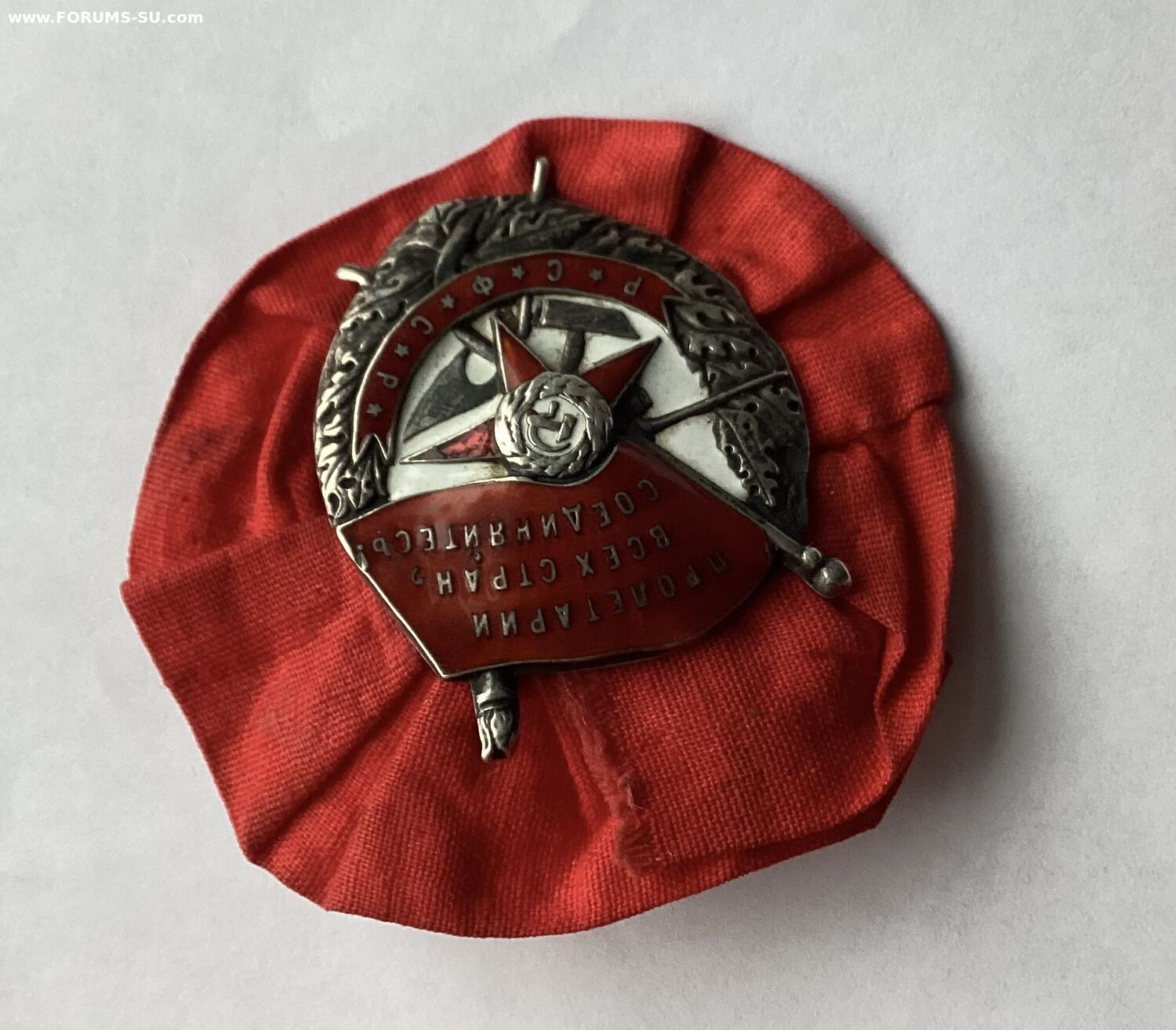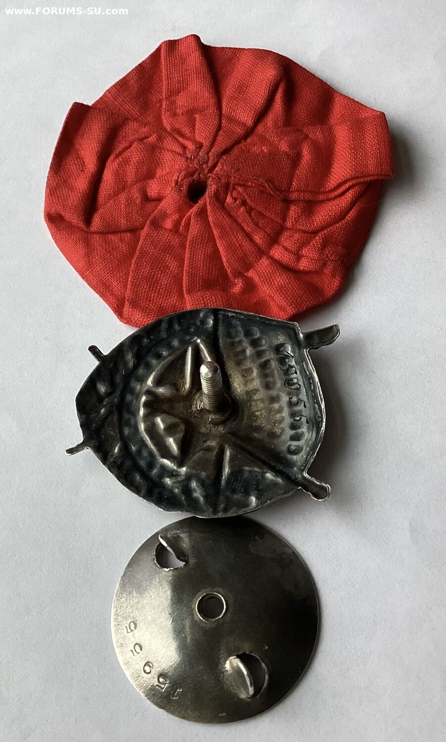 Знак без вмешательства и реставрации.Пришел вместе с розеткой.По подлинности розетки ничего не могу сказать.По эмали поверхностная чешуйка в углу у древка знамени и поверхностная чешуйка по правому лучу звезды.Других дефектов не нашел.Знак не мыли и не чистили.По белой эмали «вековую» пыль не отмывал,все хорошо видно.Пришел именно в таком виде.Родная номерная закрутка в наличии.Картинки информативные.Продам форумчанину с хорошей репутацией желательно при личной встрече в Москве или в Питере.Все вопросы по цене и по местонахождению знака прошу в личку.