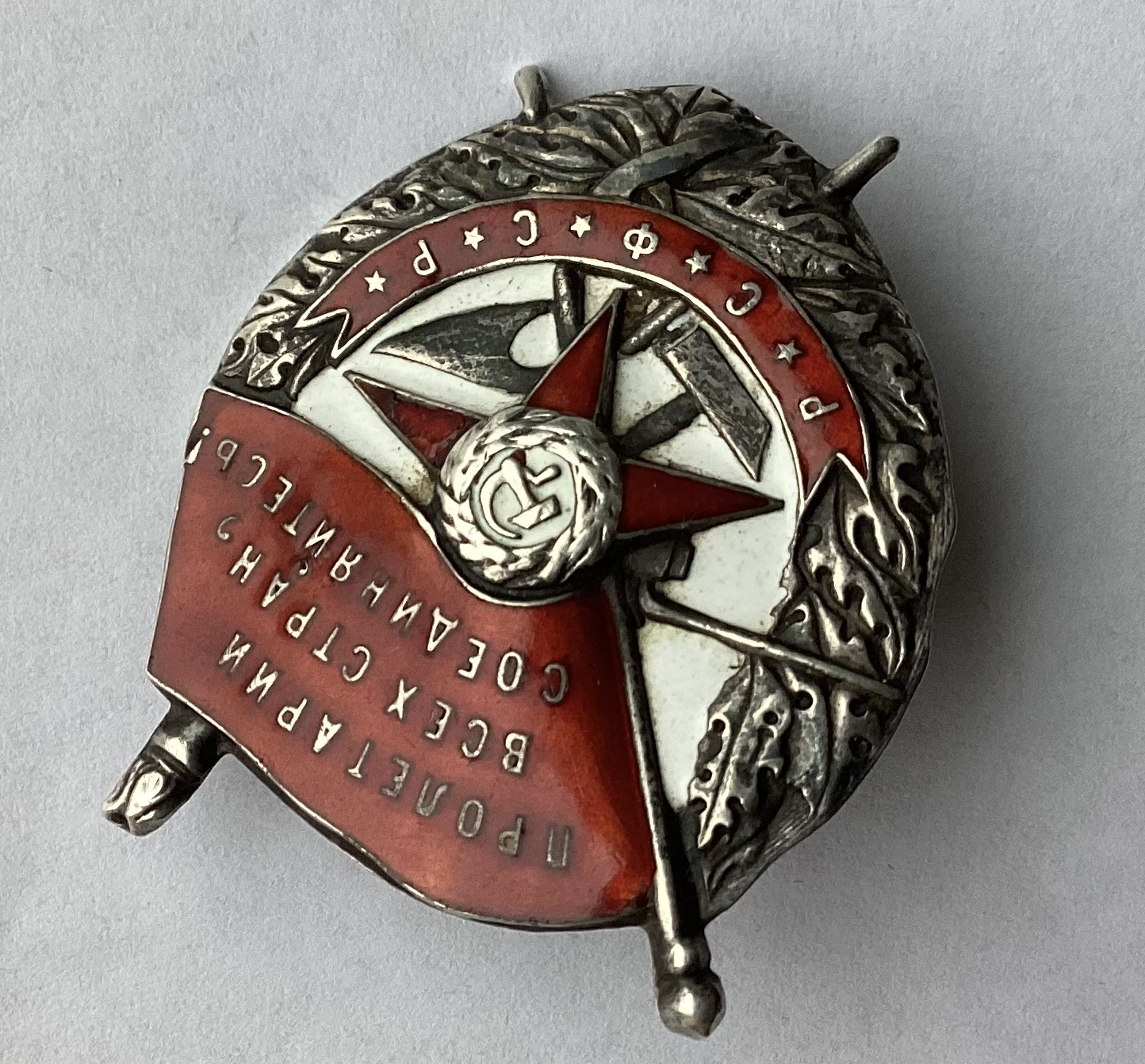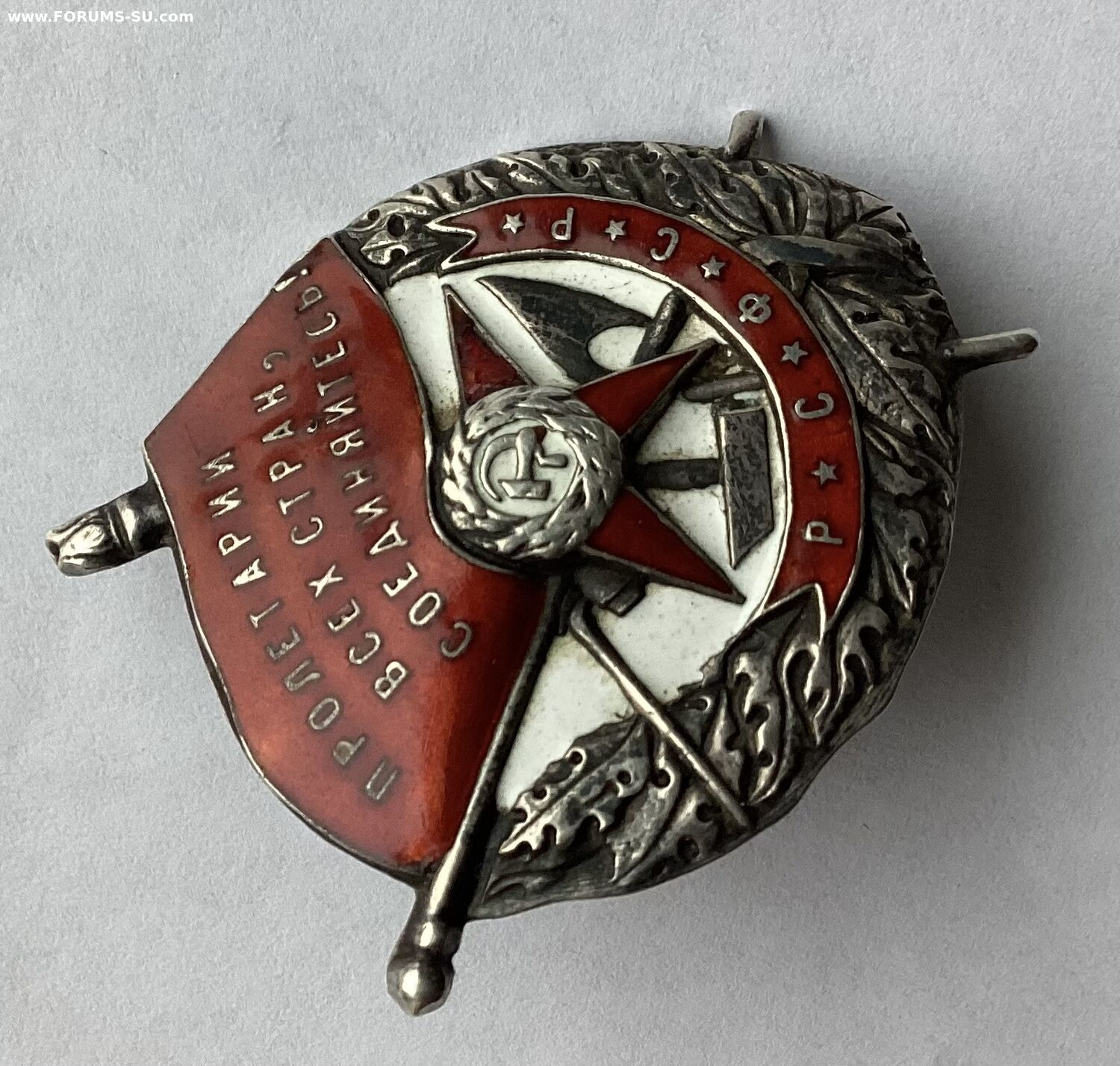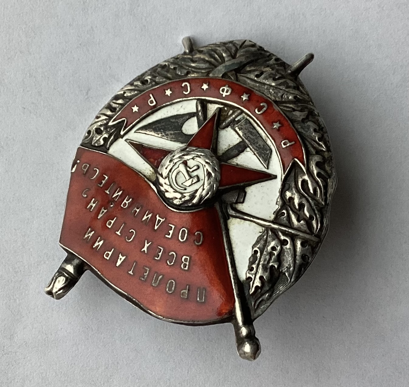 Знак без вмешательства и реставрации.Пришел вместе с розеткой.По подлинности розетки ничего не могу сказать.По эмали поверхностная чешуйка в углу у древка знамени и поверхностная чешуйка по правому лучу звезды.Других дефектов не нашел.Знак не мыли и не чистили.По белой эмали «вековую» пыль не отмывал,все хорошо видно.Пришел именно в таком виде.Родная номерная закрутка в наличии.Картинки информативные.Продам форумчанину с хорошей репутацией желательно при личной встрече в Москве или в Питере.Все вопросы по цене и по местонахождению знака прошу в личку.