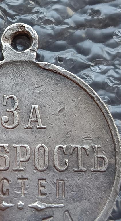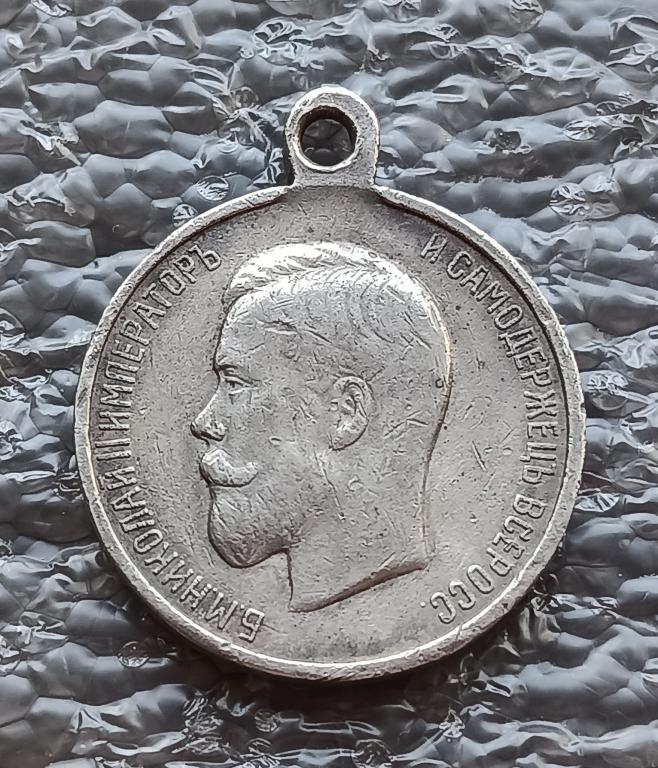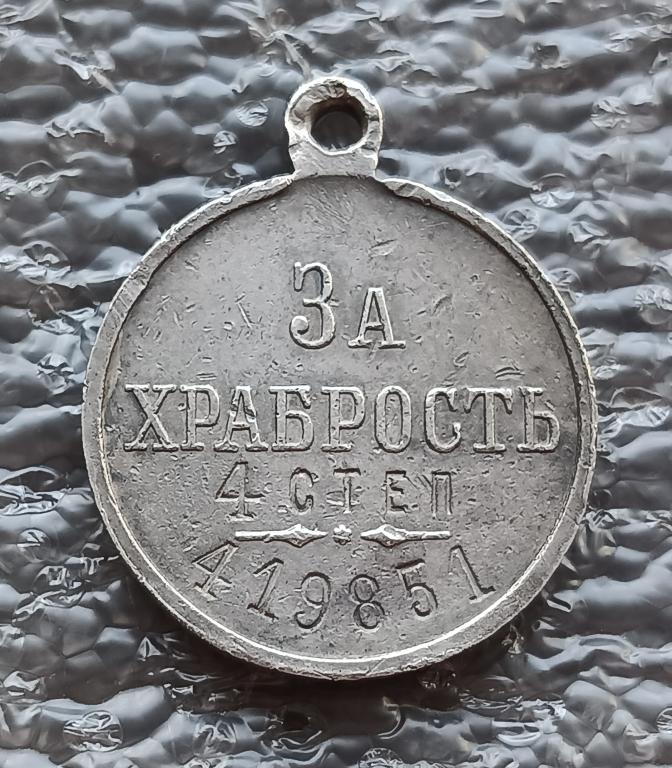 Москва, 1914–1917 гг. Фабрика Д.Л.Кучкина. Клейма на ушке с об. ст. медали: Московского окружного пробирного управления в овальном щитке и именное клеймо «ДК». Серебро. Вес 11,77 г. Диаметр 28,2 мм. На об. ст. медали внизу выбито: «4 СТЕП / 419851». Награжден стрелок 14-го стрелкового генерал-фельдмаршала Гурко полка Николай Трофимович Людвиченко. Награжден 2-го Июля 1915 года бывшим командующим 8-й армией генерал-адъютантом Брусиловым «За проявленные подвиги мужества и храбрости в бою 29-го Апреля 1915 г.». Приказ по 8 армии № 1728 от 27.7.1916 г.
