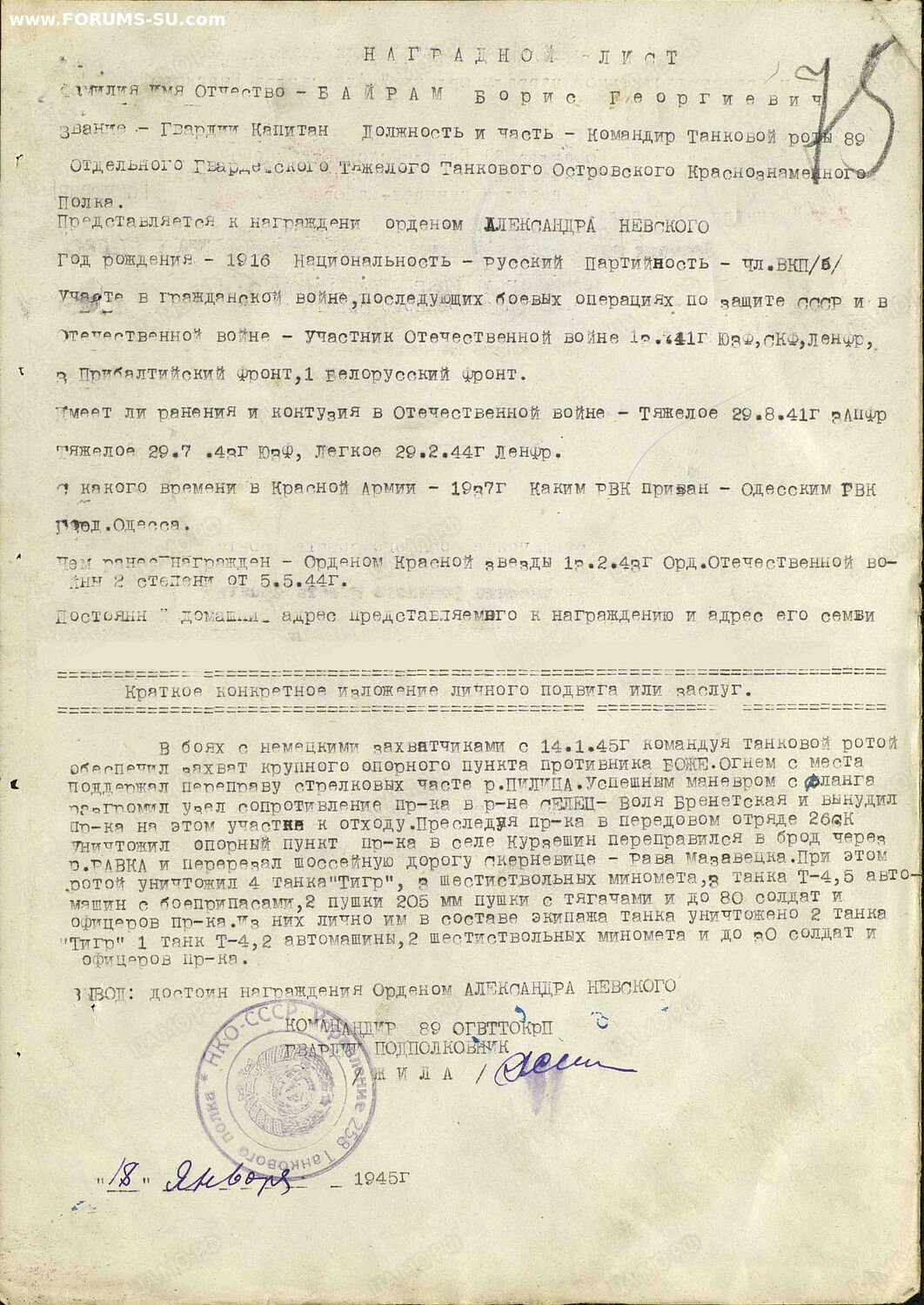 Награжден КЗ, ОВ-2, и орденом Александра Невского.