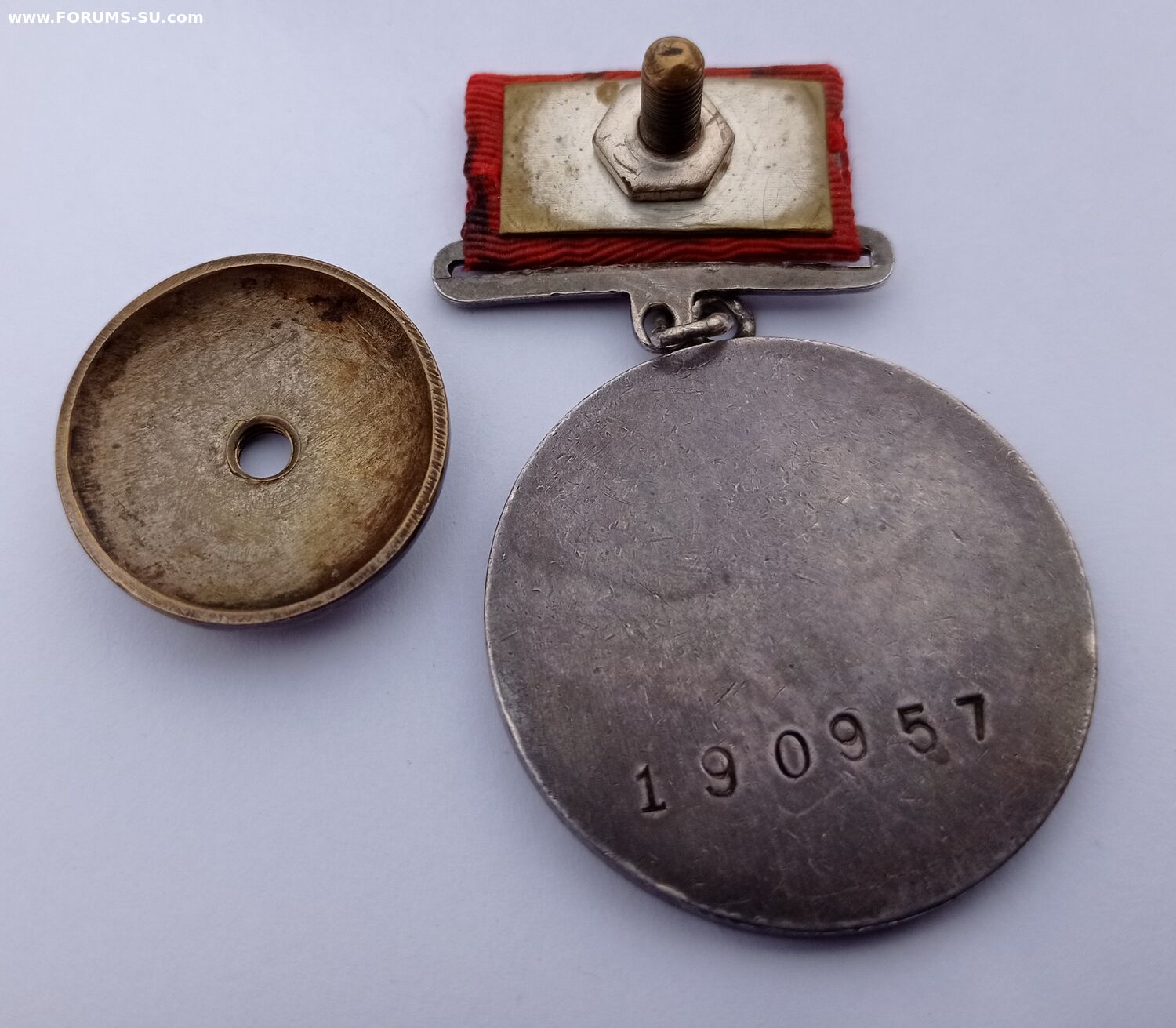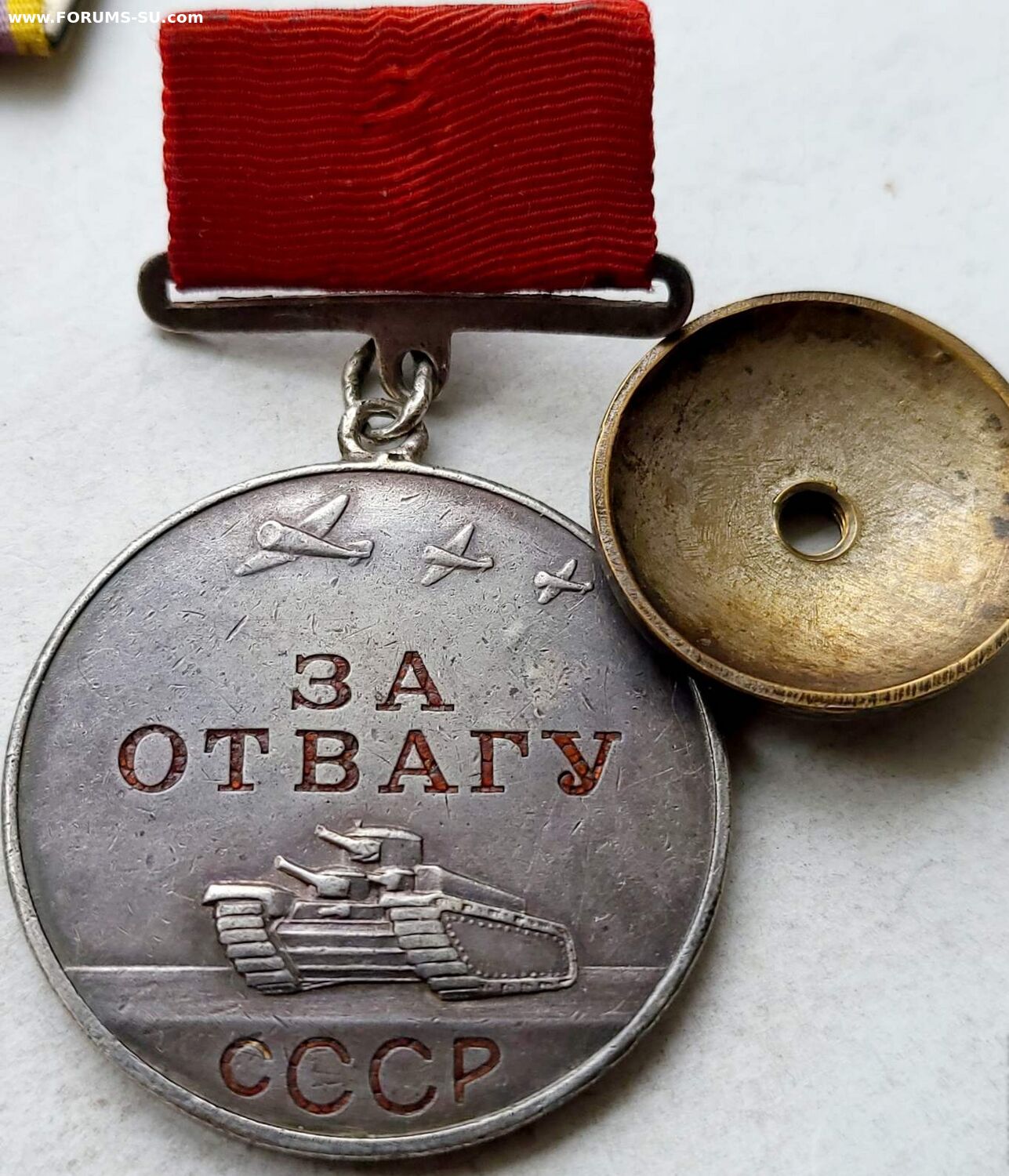 Все родное. Лак в буквах почти весь -не значительные утраты. Лента муаровая . ПЗ естественно целое. Винт не укорочен. Отличный предмет для коллекции.