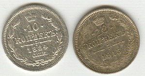 10 копеек - 1894,1915 г.