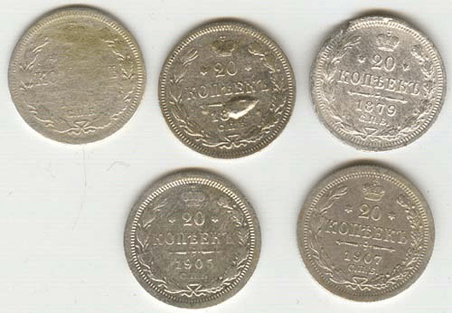 20 копеек-1879,1861,1873,1907,1905 г.