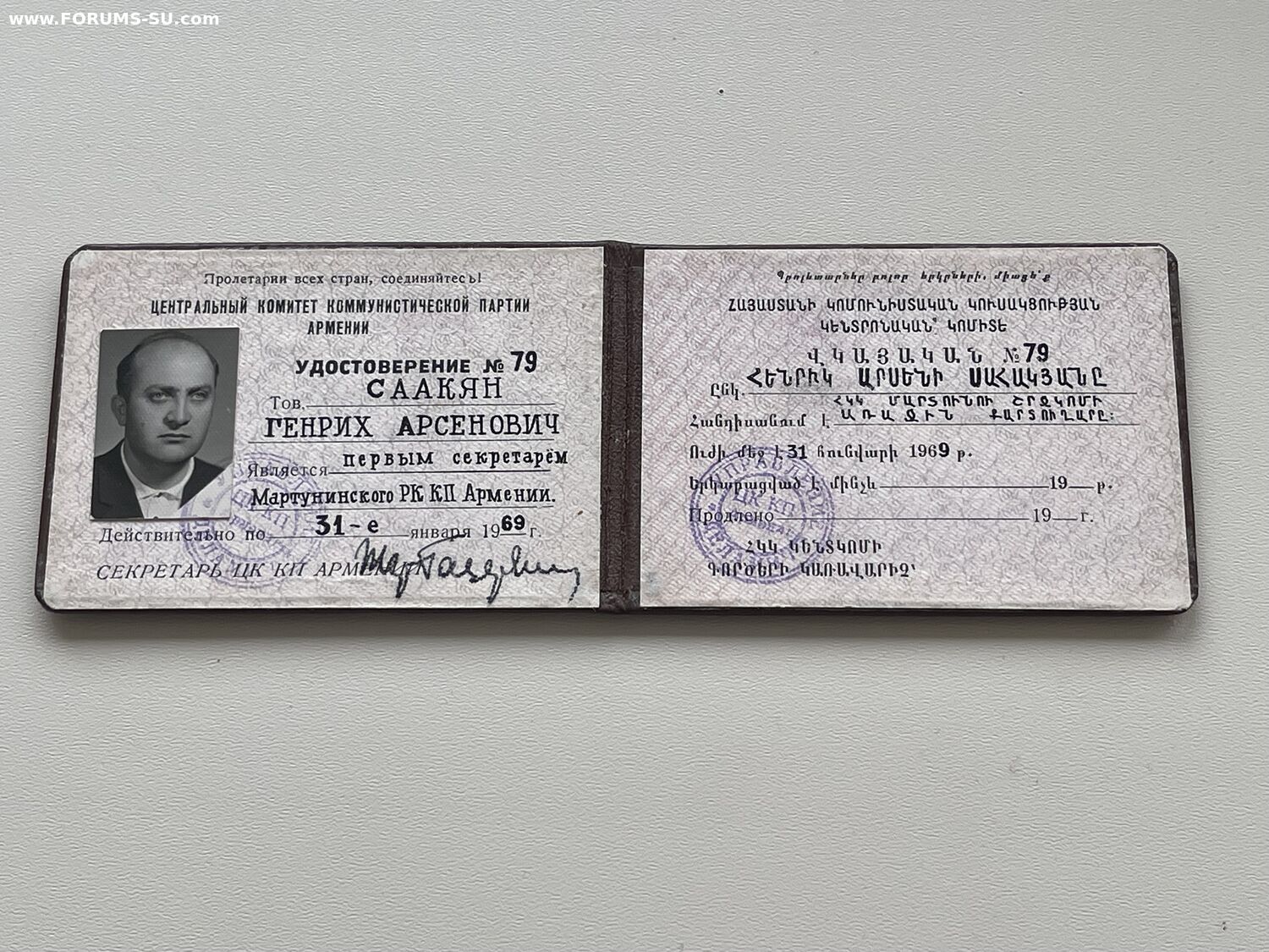 Удостоверение члена ЦК КП Армянской ССР Мироныч - 06 апр 2025 14:53.49 × Мини профиль пользователя Мироныч Сообщения: 996 Зарегистрирован: 12 июл 2015 23:18.31 Откуда: RIGA Статус: Не в сети - 06 апр 2025 14:53.49 #6847052 Удостоверение члена ЦК КП Армянской СССРФикс 2000 рублей Коллекция депутатских знаков.