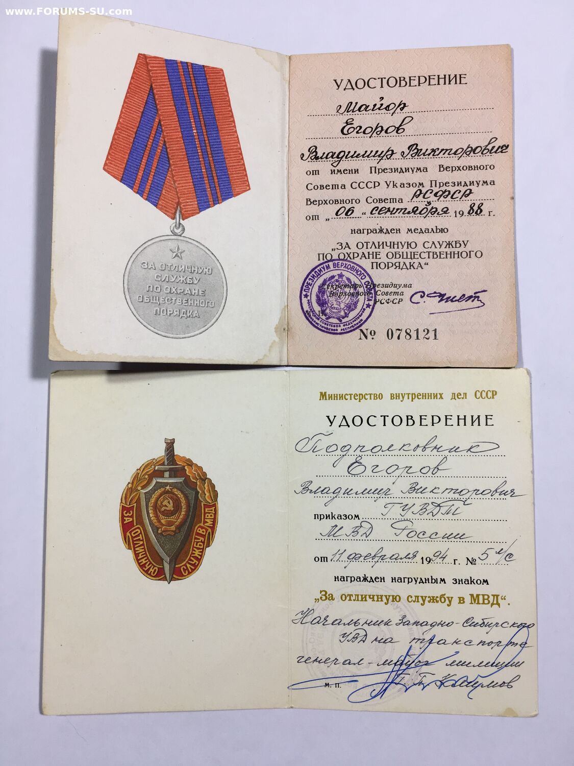 медаль ООП;знак за Отл.Службу в МВД;благодарность.