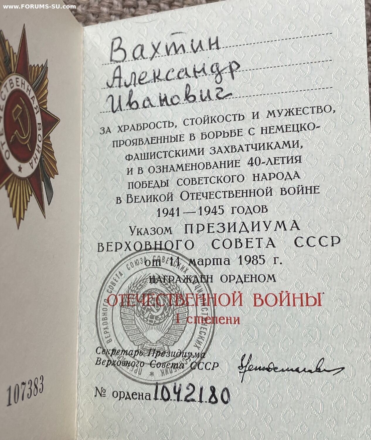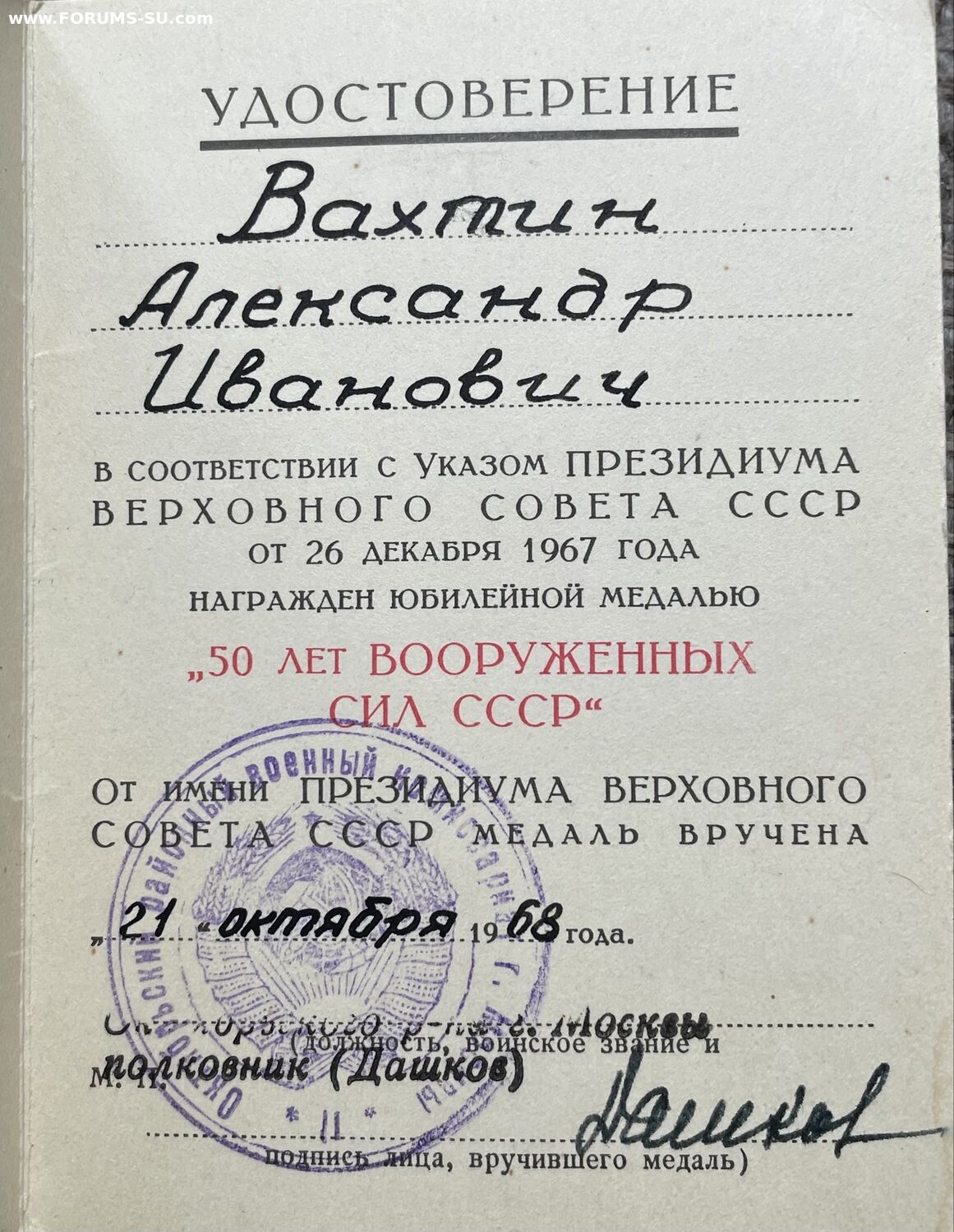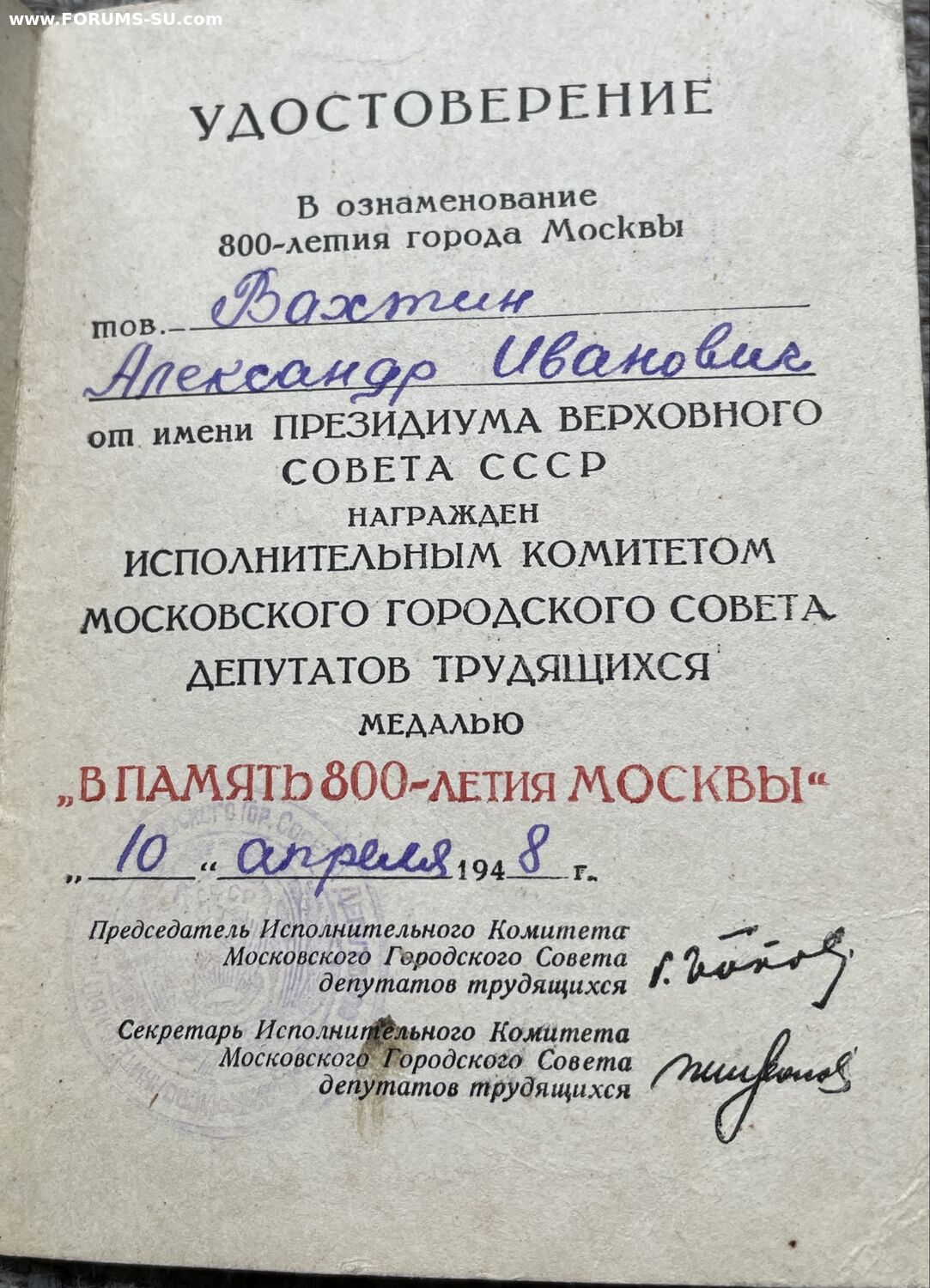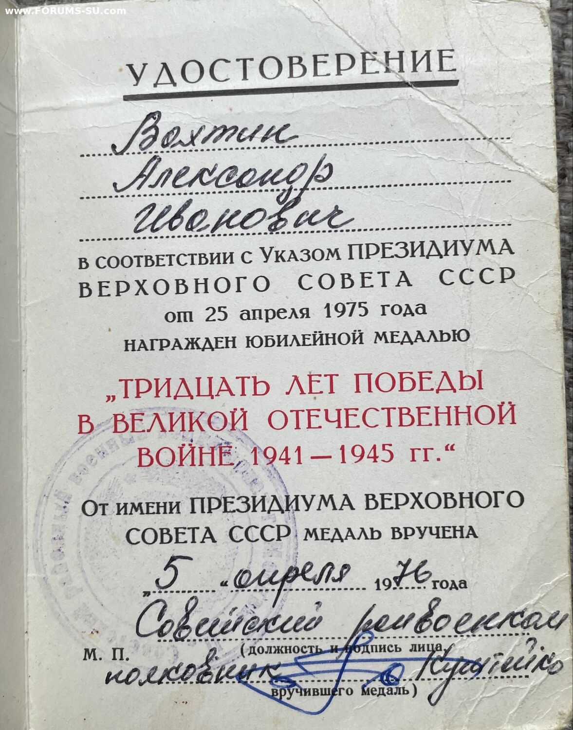 Лот документов на одного владельца: красноармейская книжка, военный билет, удостоверения к медалям.