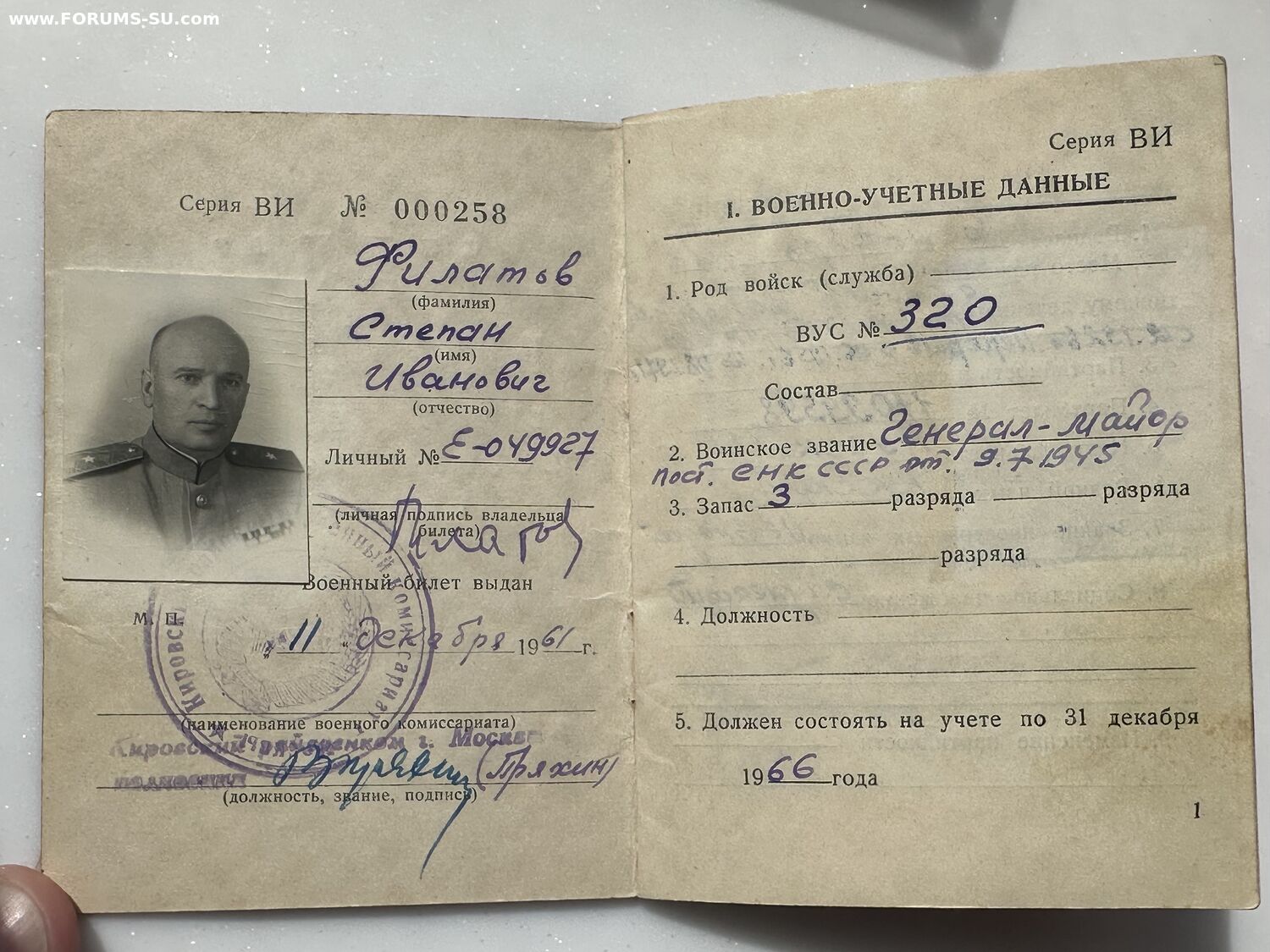 Военный билет входит в лот.