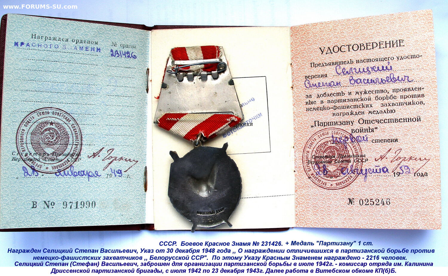 Медаль Партизану 1 ст. + БКЗ, на документах на комиссара отряда имени Калинина.