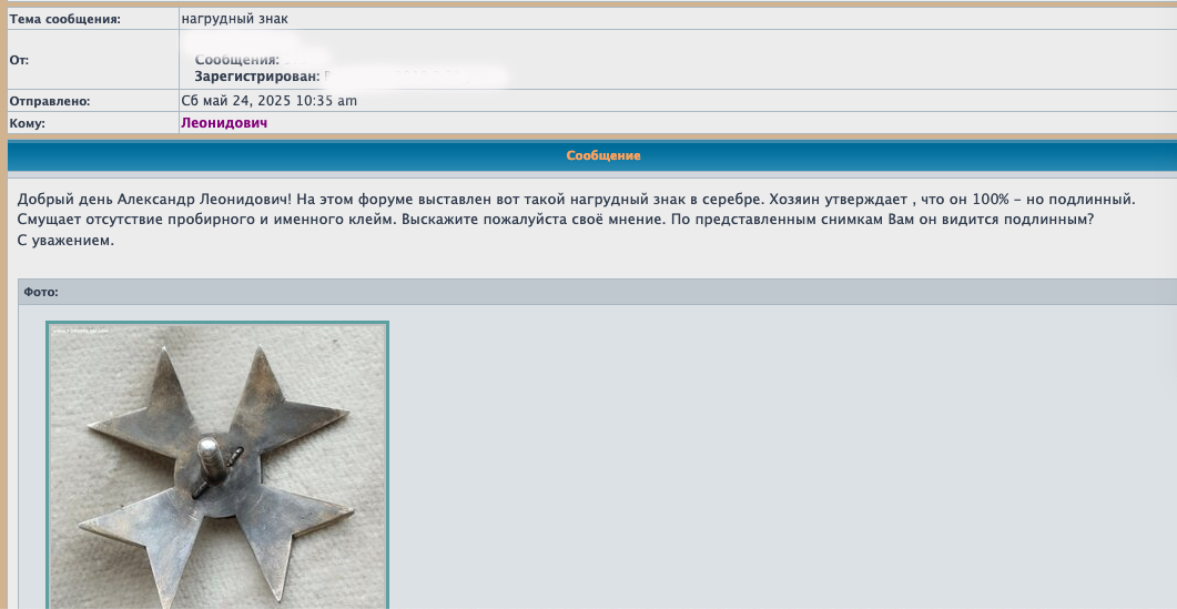 kjh писал(а):Подлинность знака сомнений не вызывает. Многих пугает отсутствие клейм, в частности пробирного. Знак территориально в Санкт-Петербурге?