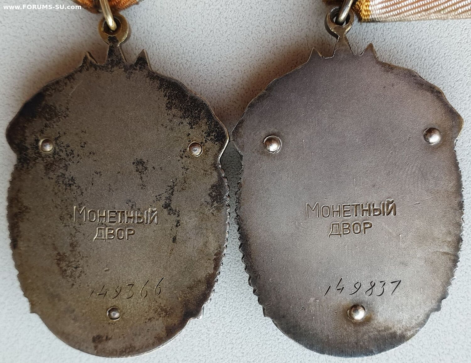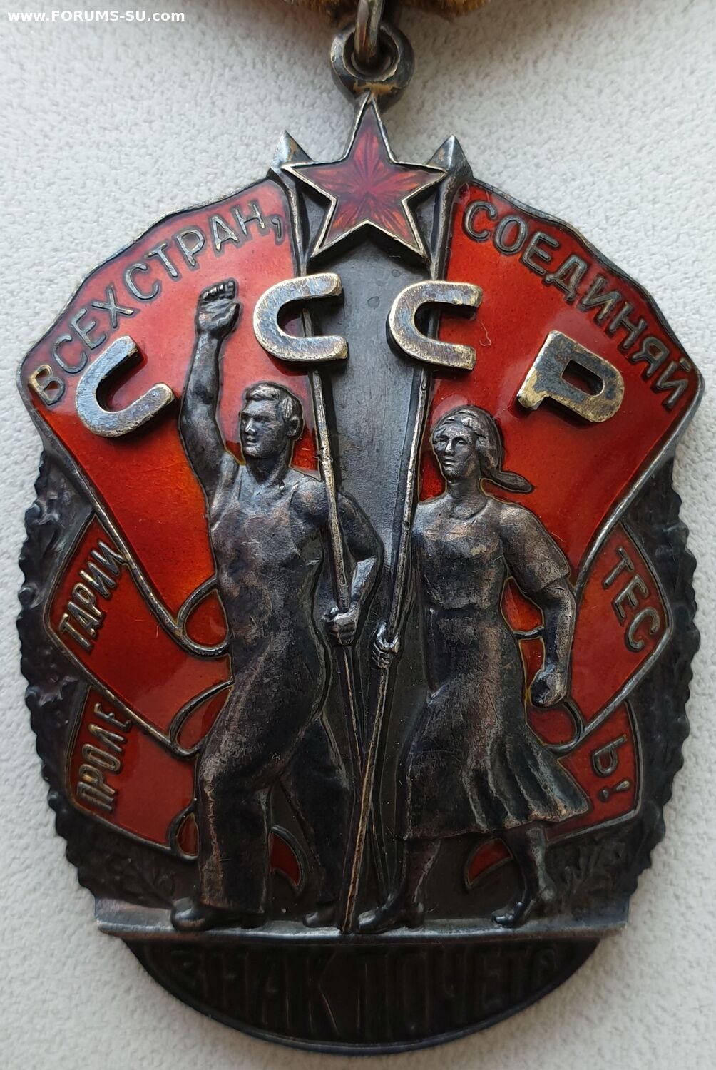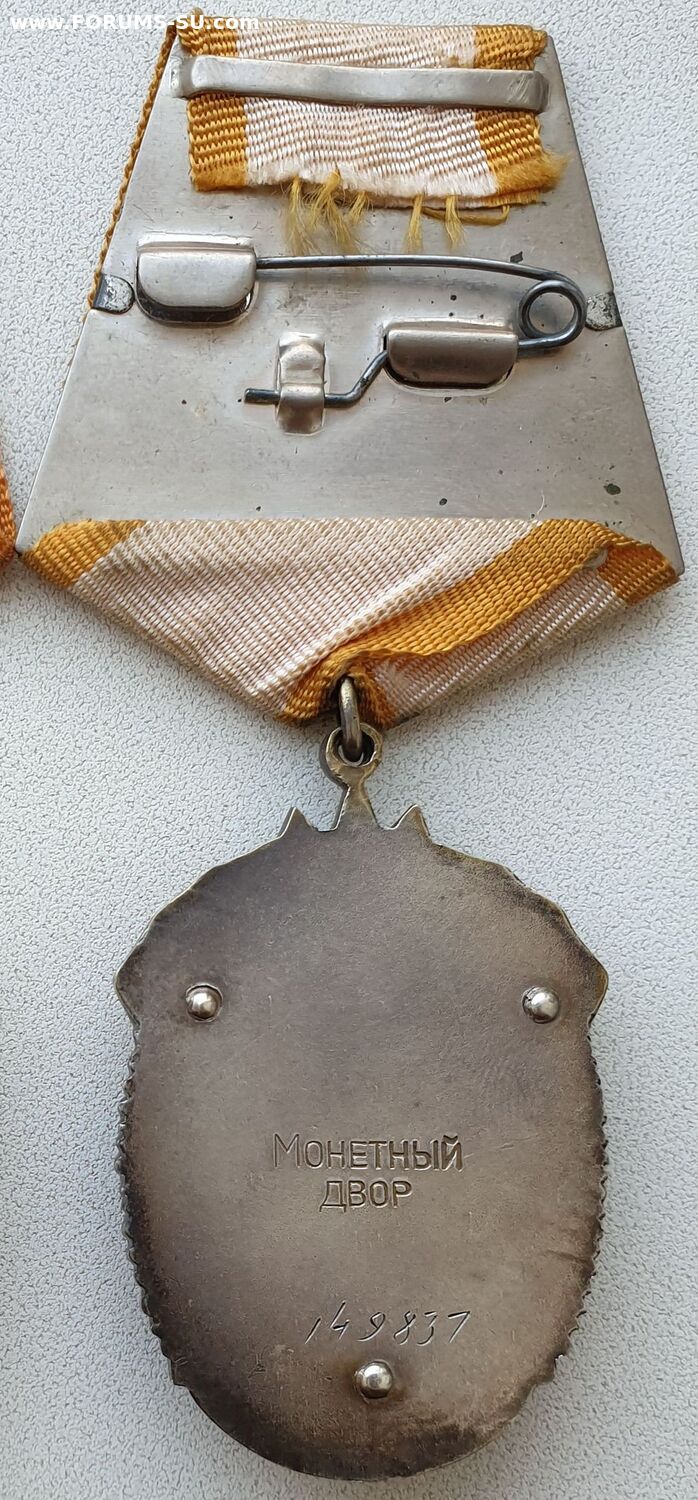 Люкс. Звено целое. Исключение из диапазона Тип 3, вариант 5, Разновидность 2. Голова рабочего несколько уменьшилась, лицо "повзрослело”, вырез комбинезона приобрел округлую форму. Пальцы поднятой вверх руки полусогнуты, колхозница охватывает древко знамени изнутри. Данные особенности фигур рабочего и колхозницы характерны и для следующего типа ордена. Минимальный известный номер – 160094, максимальный – 169458. Он же - "плоский без пояса".