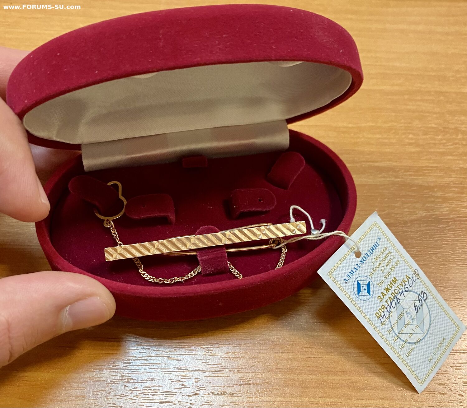 В продаже золотой зажим для галстука. Новый, неодеваный. В родной коробке. Золото 585 пробы. Вес - 5,53 грамма.