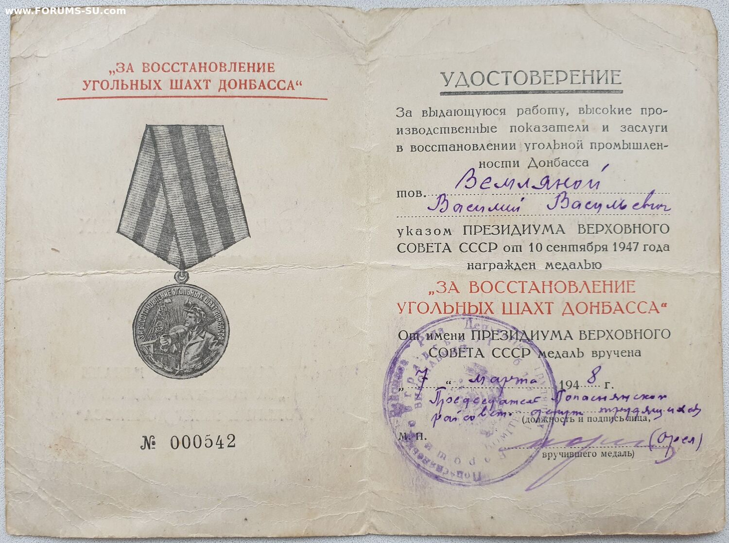 Вручён в городе Попасная Луганской обл.