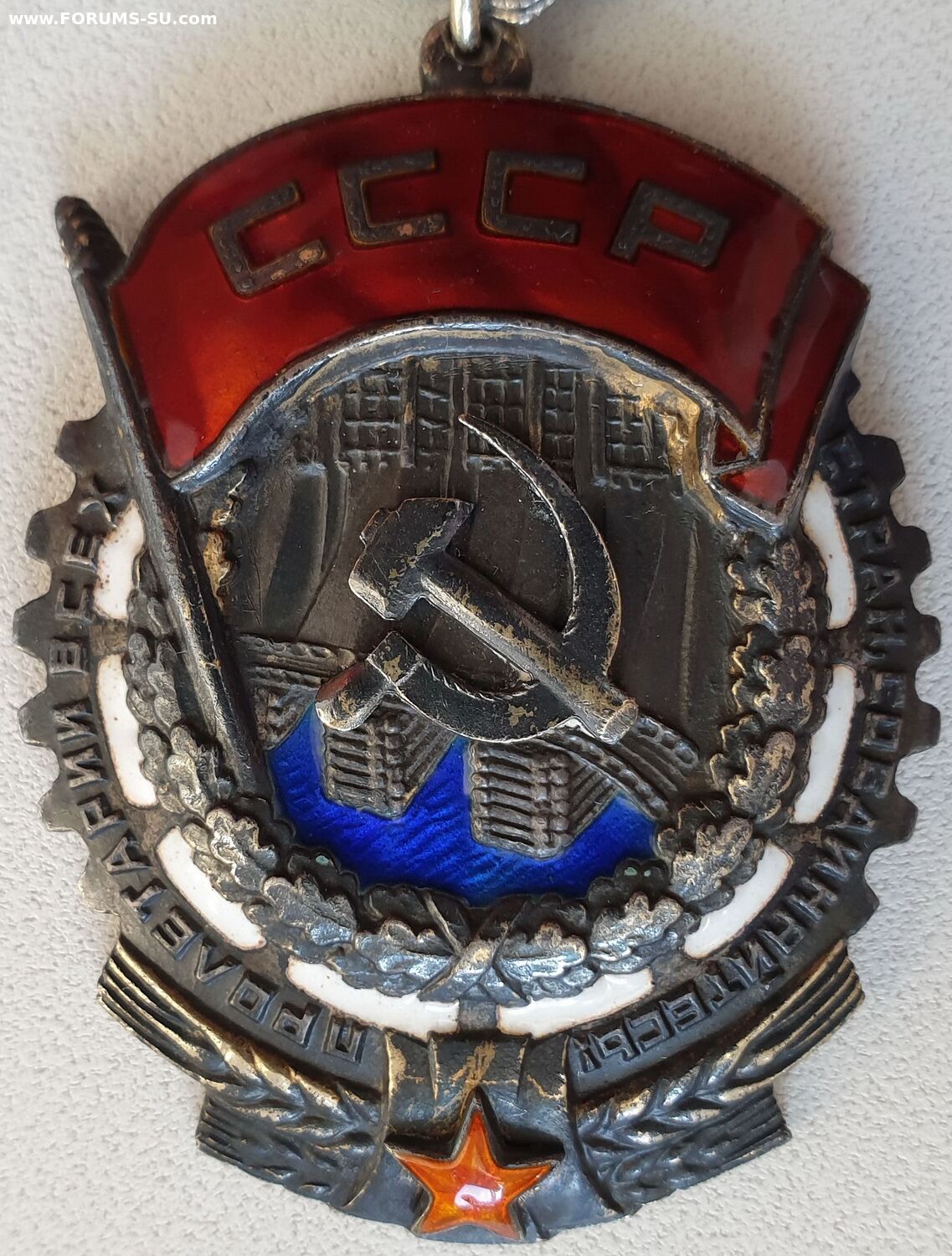 Шикарный коллекционный орден в красивейшей патине. На звёздочке на кончиках лучей 3 и 7 час шелушки. С трудом в лупу поймал. И на знамени точка на отвороте видна.