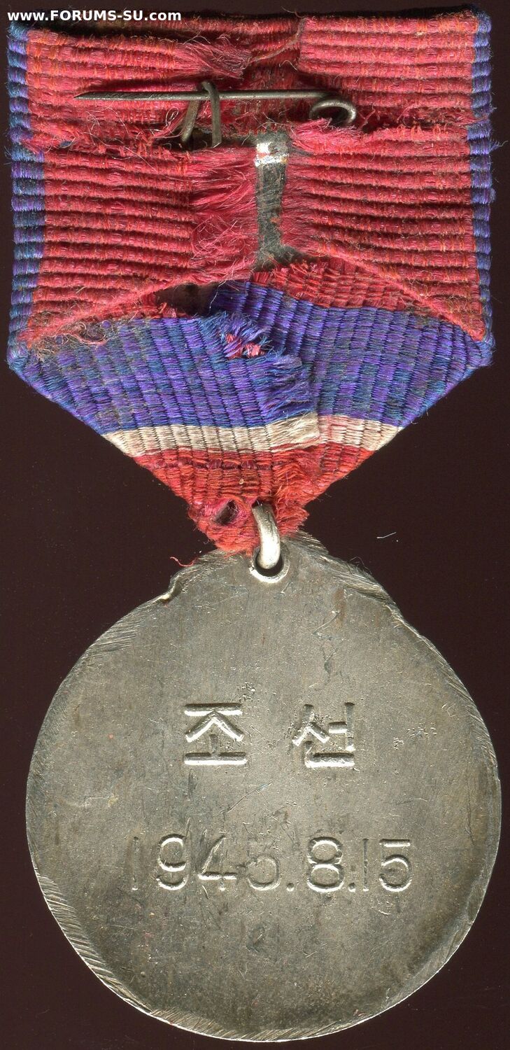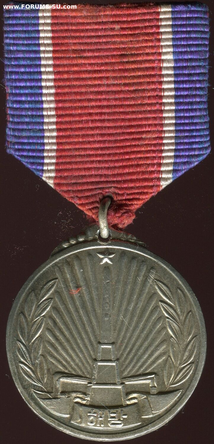 "В ознаменование вечной благодарности корейского народа Великой Советской Армии, освободившей Корею от японских империалистов, учредить медаль "ЗА ОСВОБОЖДЕНИЕ КОРЕИ". Учреждена Указом Президиума Верховного Народного Собрания 15 октября 1948г. для награждения советских воинов.