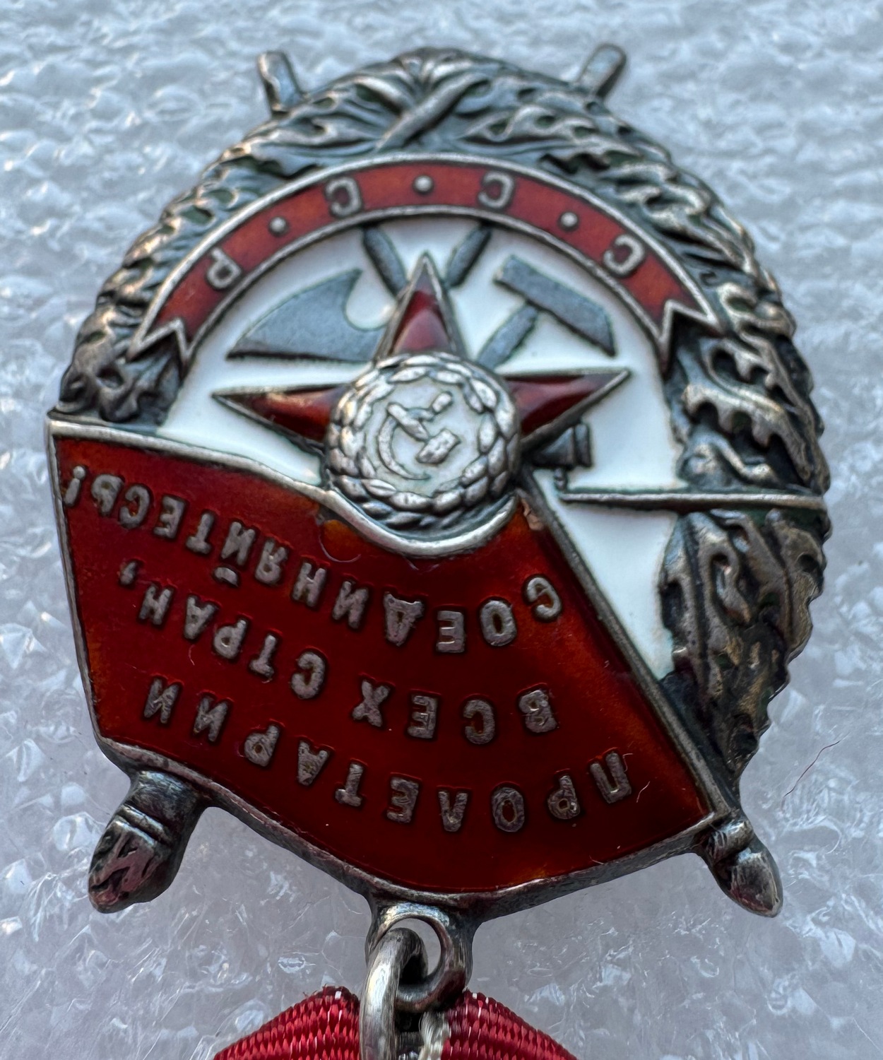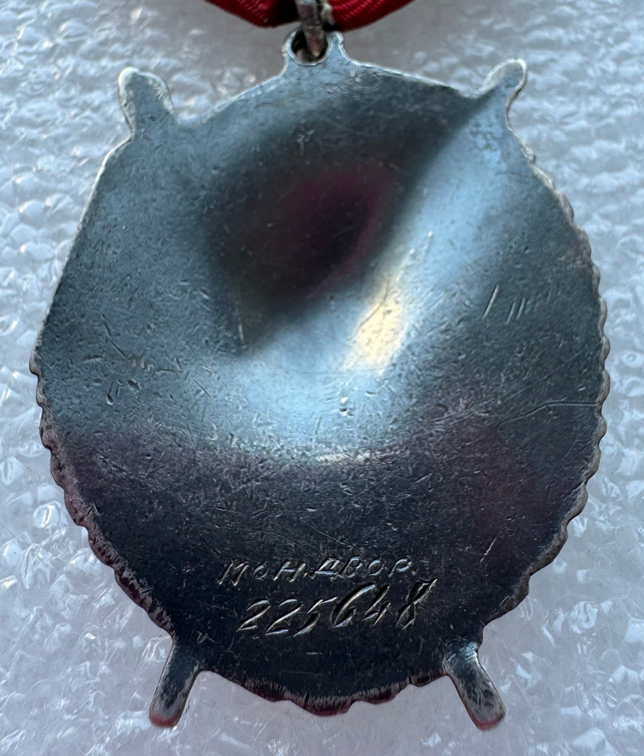 Три чешуи на знамени: внизу, рядом с ухом и по правой кромке. Чешуйка в основании левого лучика звездочки.