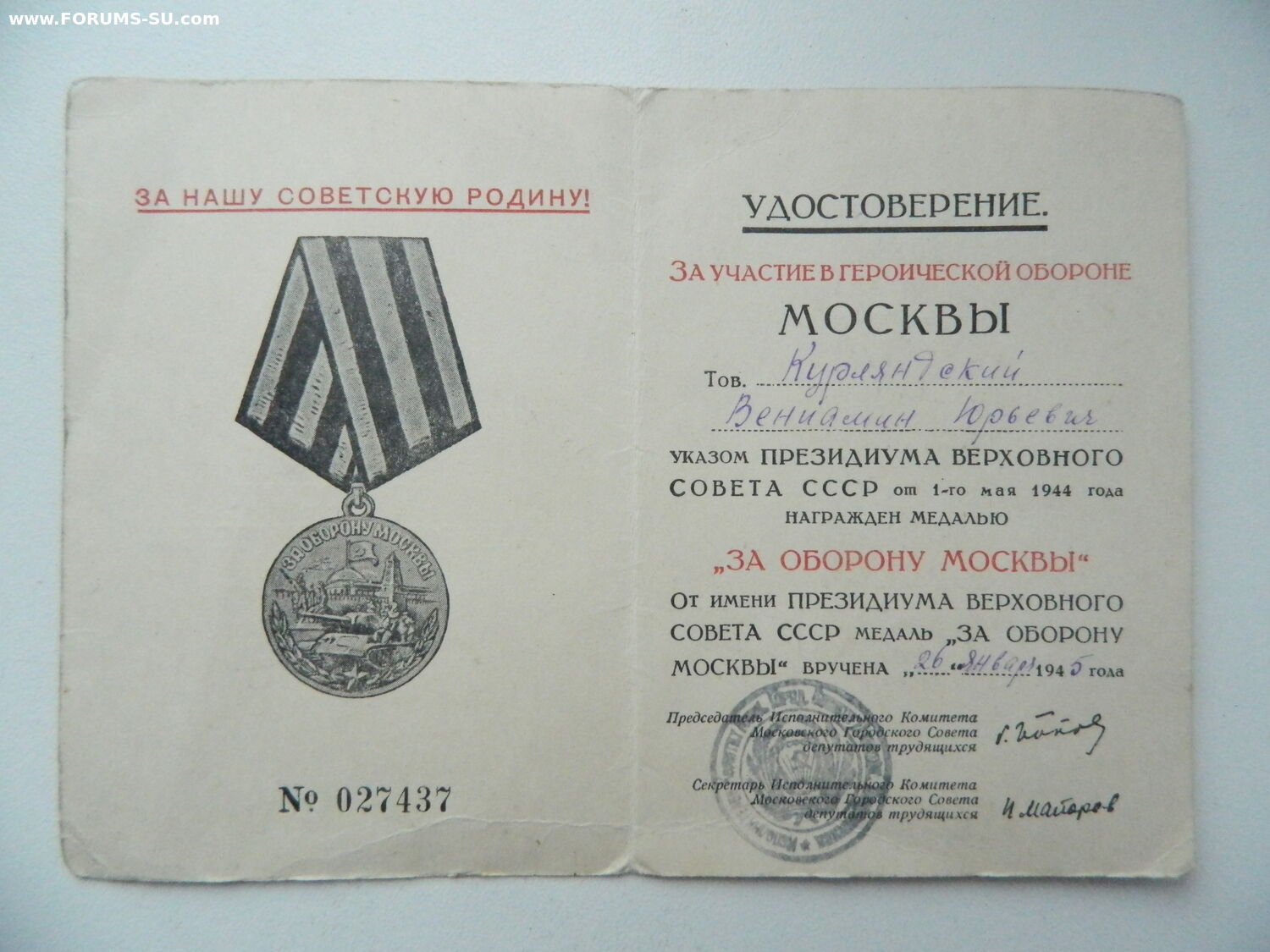 Вениамин Юрьевич Курляндский (5 декабря 1908 — 14 октября 1977) — советский учёный-стоматолог, заведующий кафедрой госпитальной ортопедической стоматологии Московского медицинского стоматологического института имени Н. А. Семашко (1952–1977). Заслуженный деятель науки РСФСР, доктор медицинских наук, профессор.
