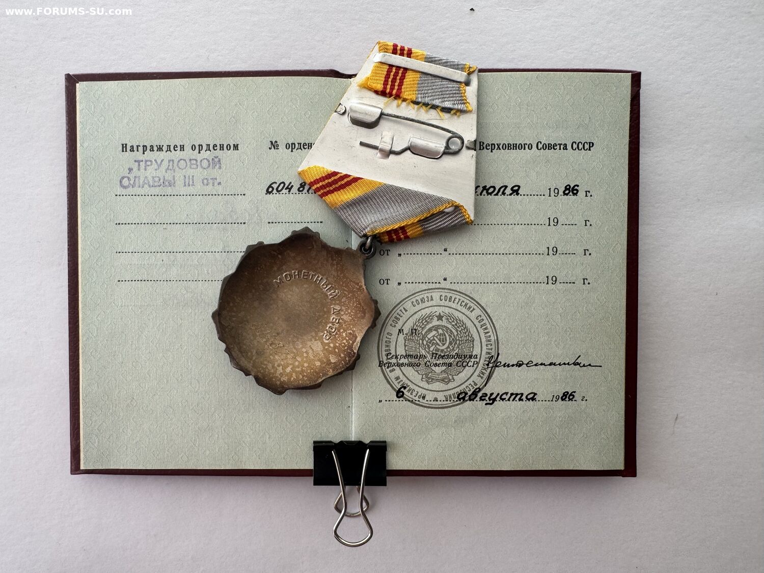 Орден Трудовая Слава 3 ст. + документ + коробочка. Знак в Люксе, прекрасная патина - без вмешательств.