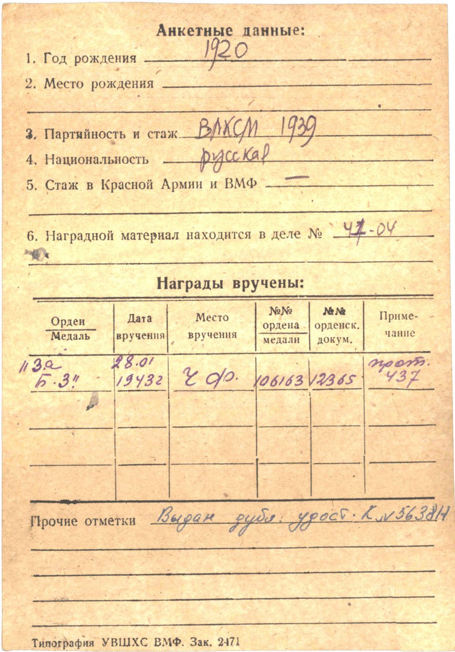 Медаль на квадро-колодке ЗбЗ № 106163 на девушку- повара ,участницу обороны Севастополя!