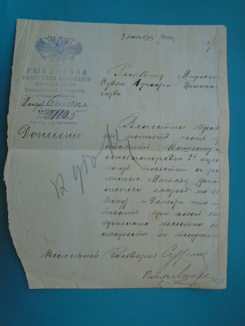Донесение из Рыбинского волостного правления 1900 год Комбат 56 - 08 сен 2025 09:52.36 × Мини профиль пользователя Комбат 56 Сообщения: 10086 Зарегистрирован: 26 июн 2009 03:34.09 Статус: Не в сети - 08 сен 2025 09:52.36 #6869925 Донесение из Рыбинского волостного правления Канского уезда Енисейской губернии 8 ноября 1900 годаЦена 2000 руб Фото Мой esaul_56@mail.ru