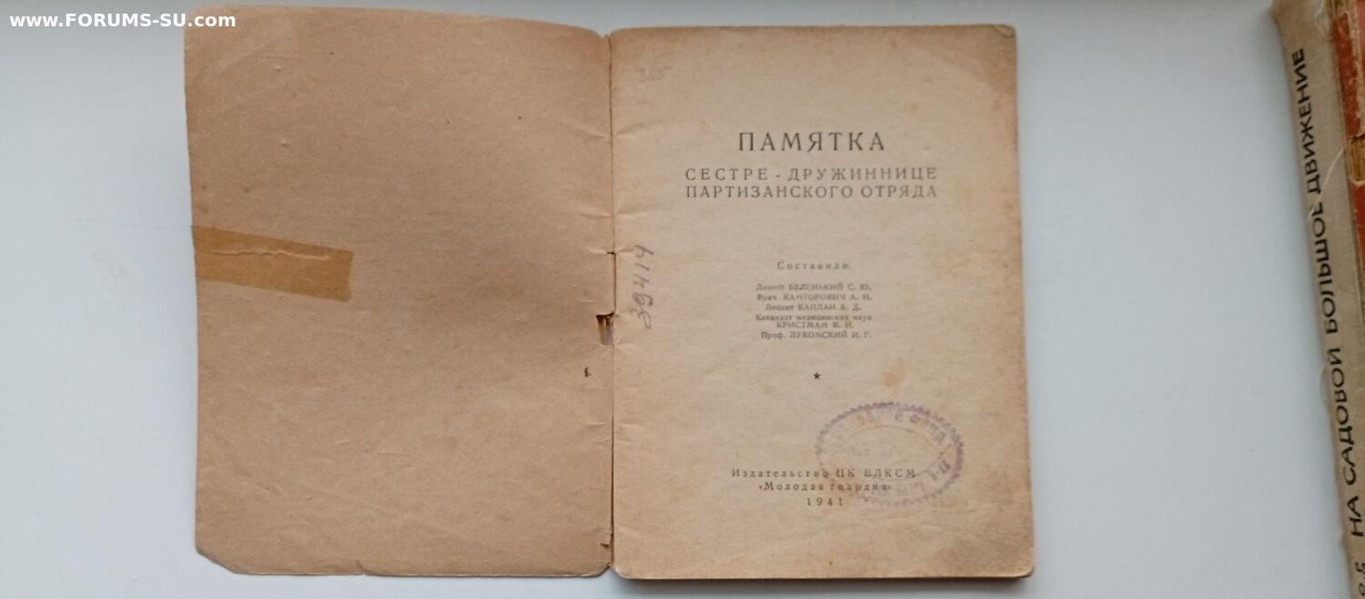 продам a.v.kuzmin - 29 сен 2025 20:42.39 × Мини профиль пользователя a.v.kuzmin Сообщения: 2 Зарегистрирован: 29 сен 2025 19:12.40 Статус: Не в сети - 29 сен 2025 20:42.39 #6873730 Памятка сестре-дружиннице партизанского отряда, издательство "Молодая гвардия", 1941 г. ,тираж 30000 экз.Все страницы на месте. 25000 руб. Фото