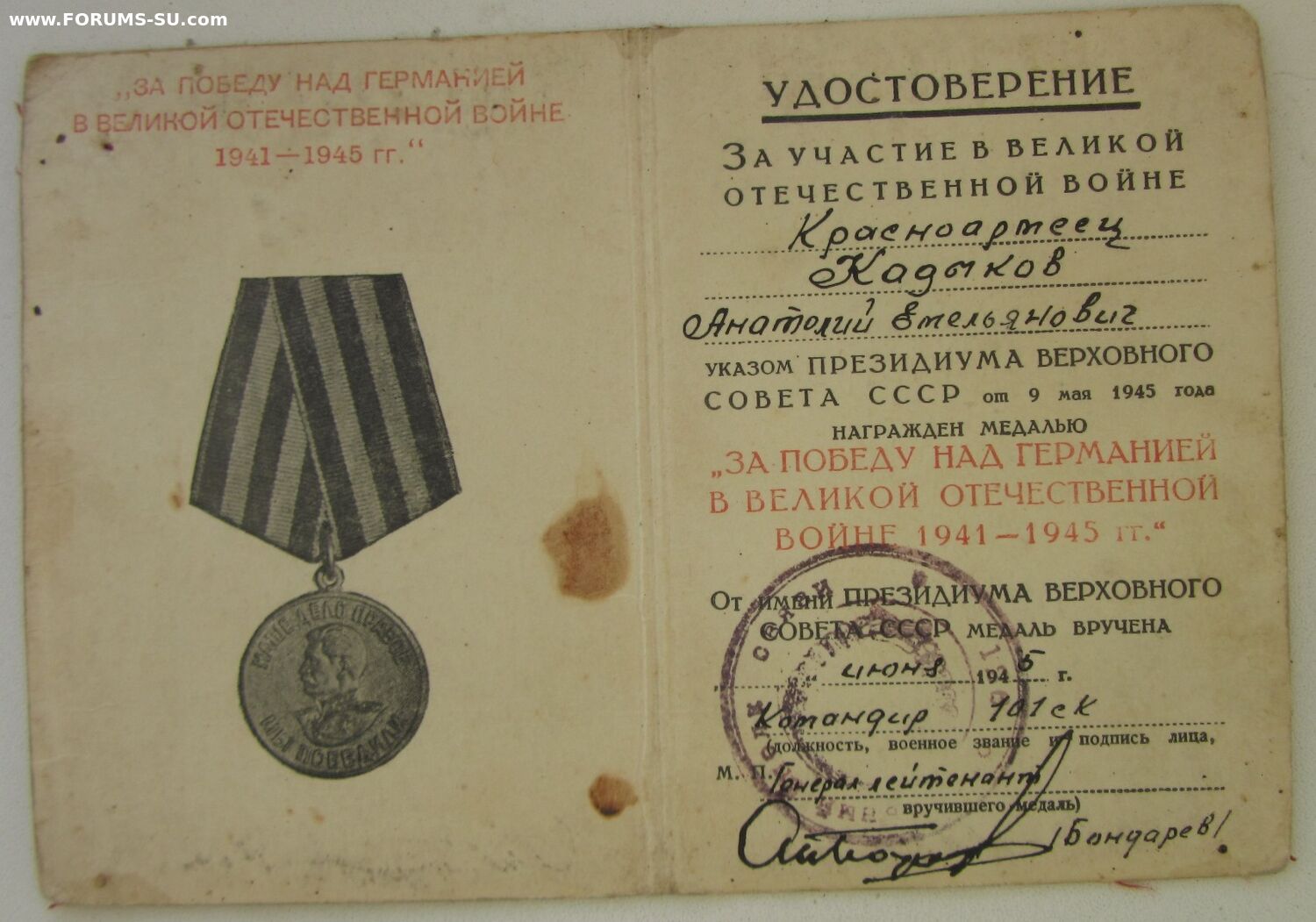 генерал-лей-нт Бондарев Андрей Леонтьевич