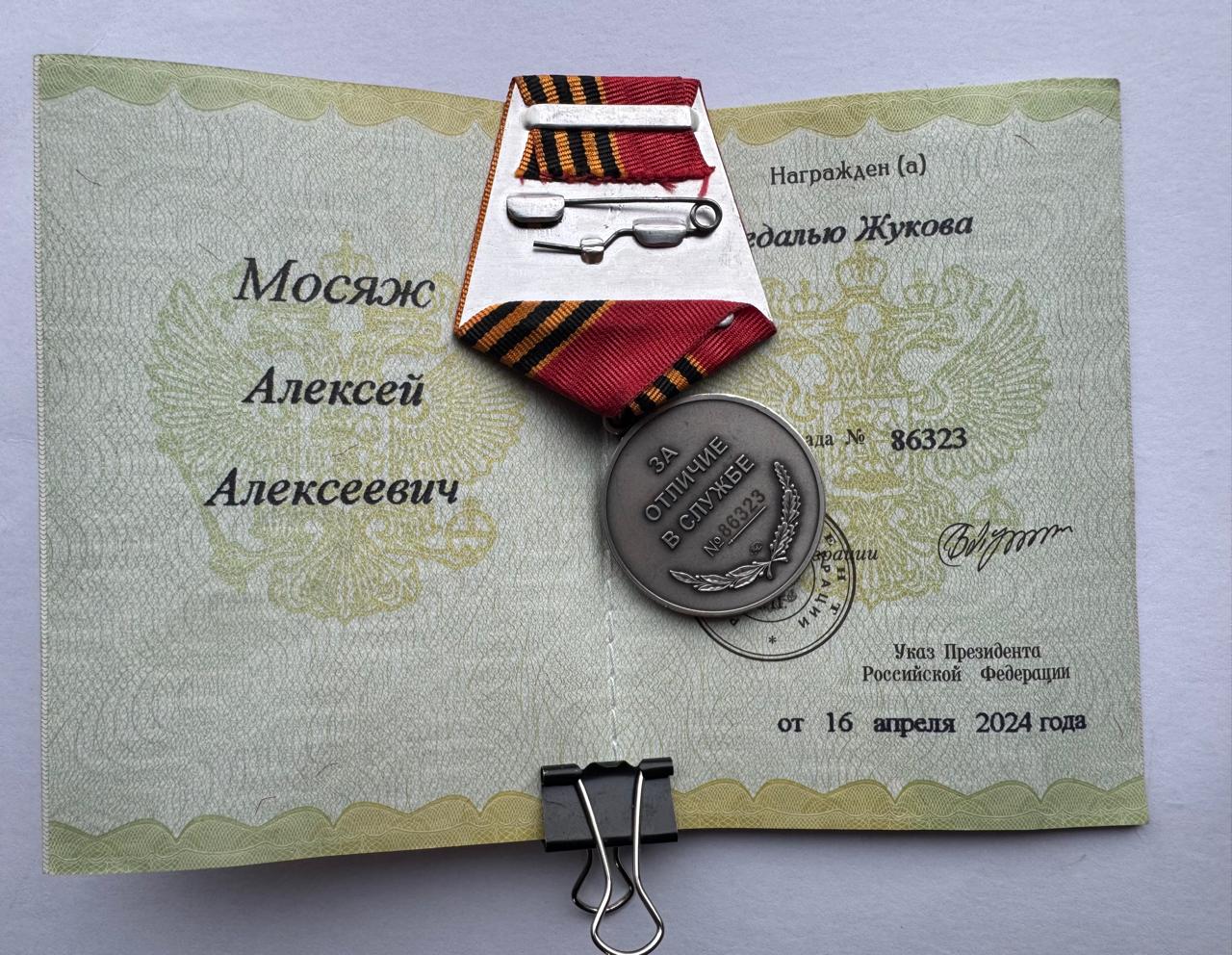 Медаль Жукова и За БЗ ЛНР на документах.